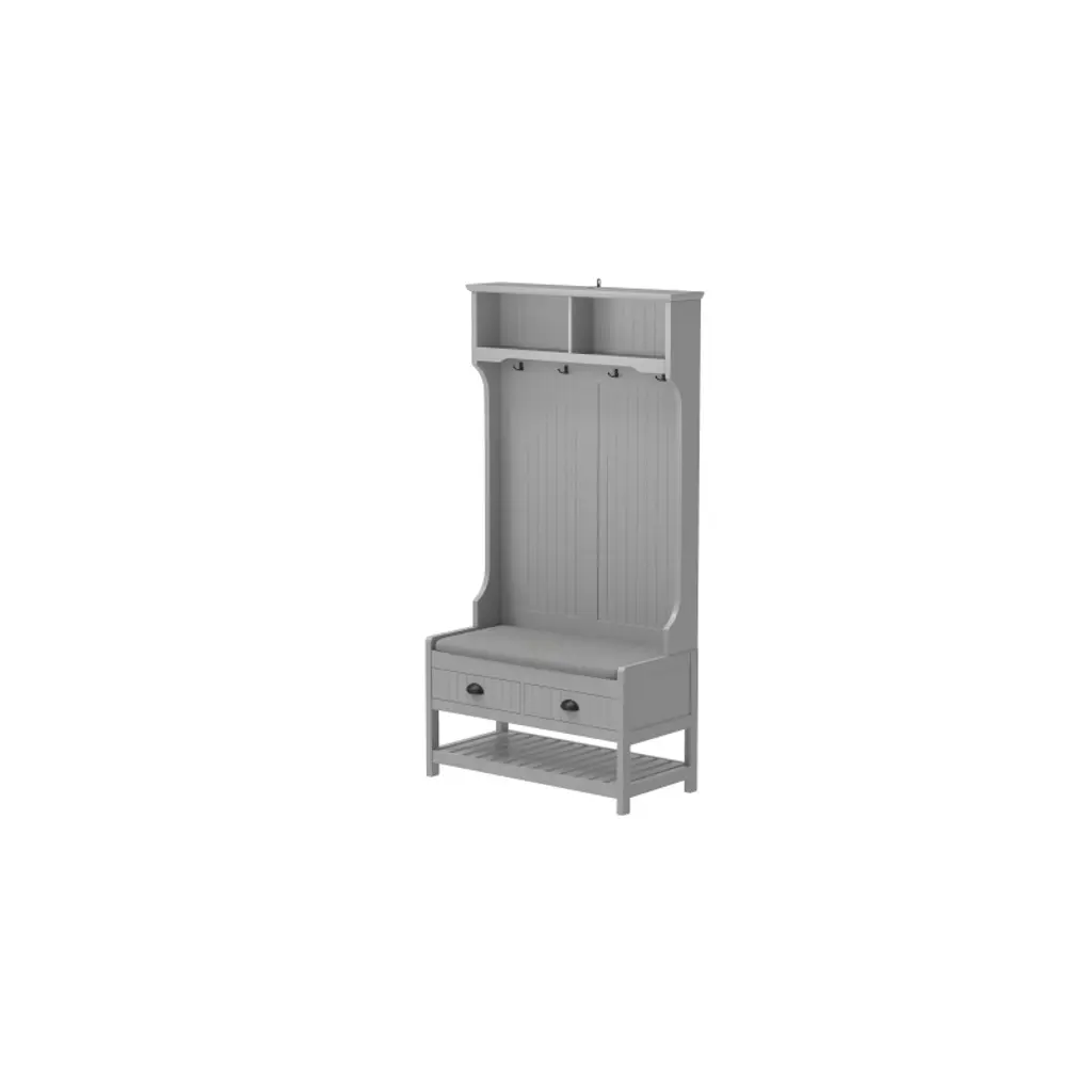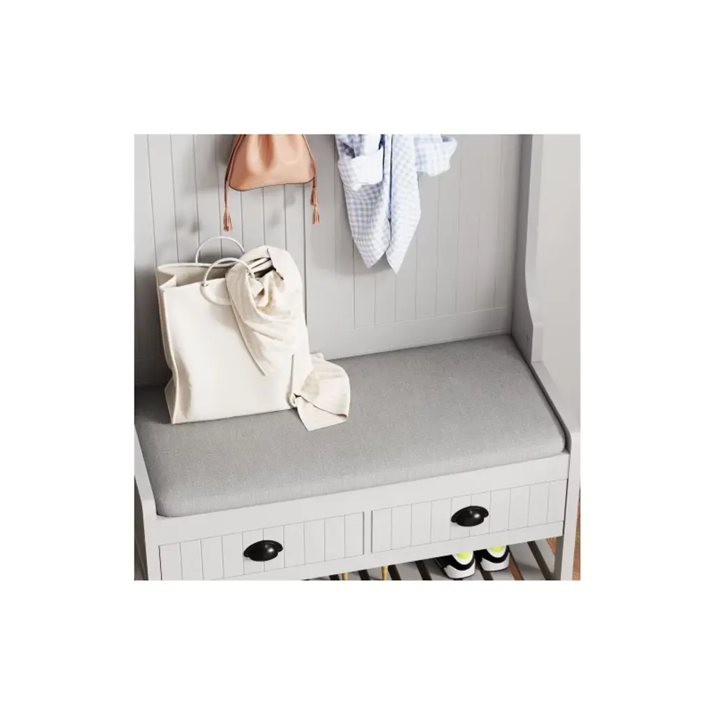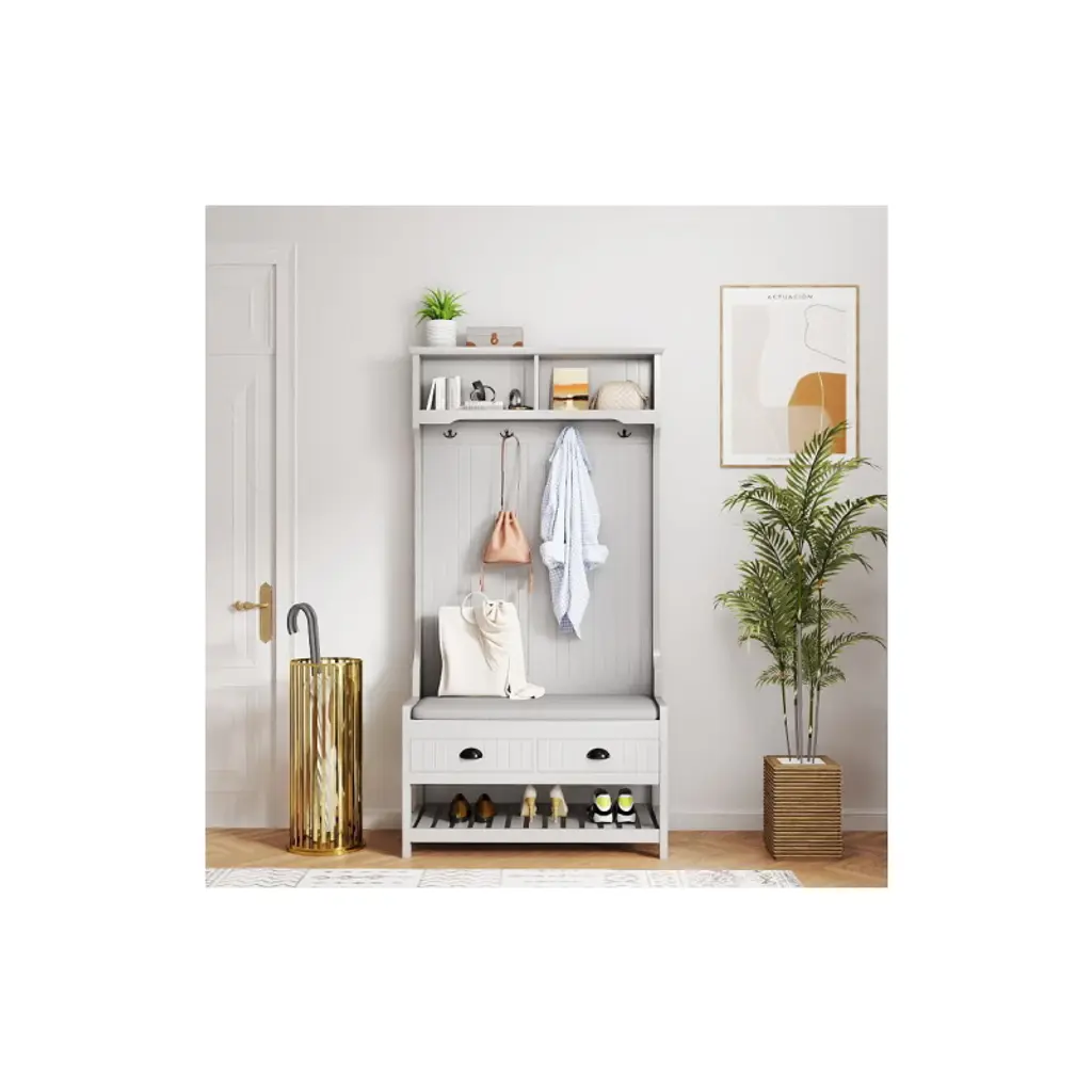 Livareemlen 3-in-1 Hallway Garment Racks With 2 Storage Drawer And 4 Coat Rack, Wooden Entryway Shoe Rack Bench With Padded Seat Cushion(grey)
