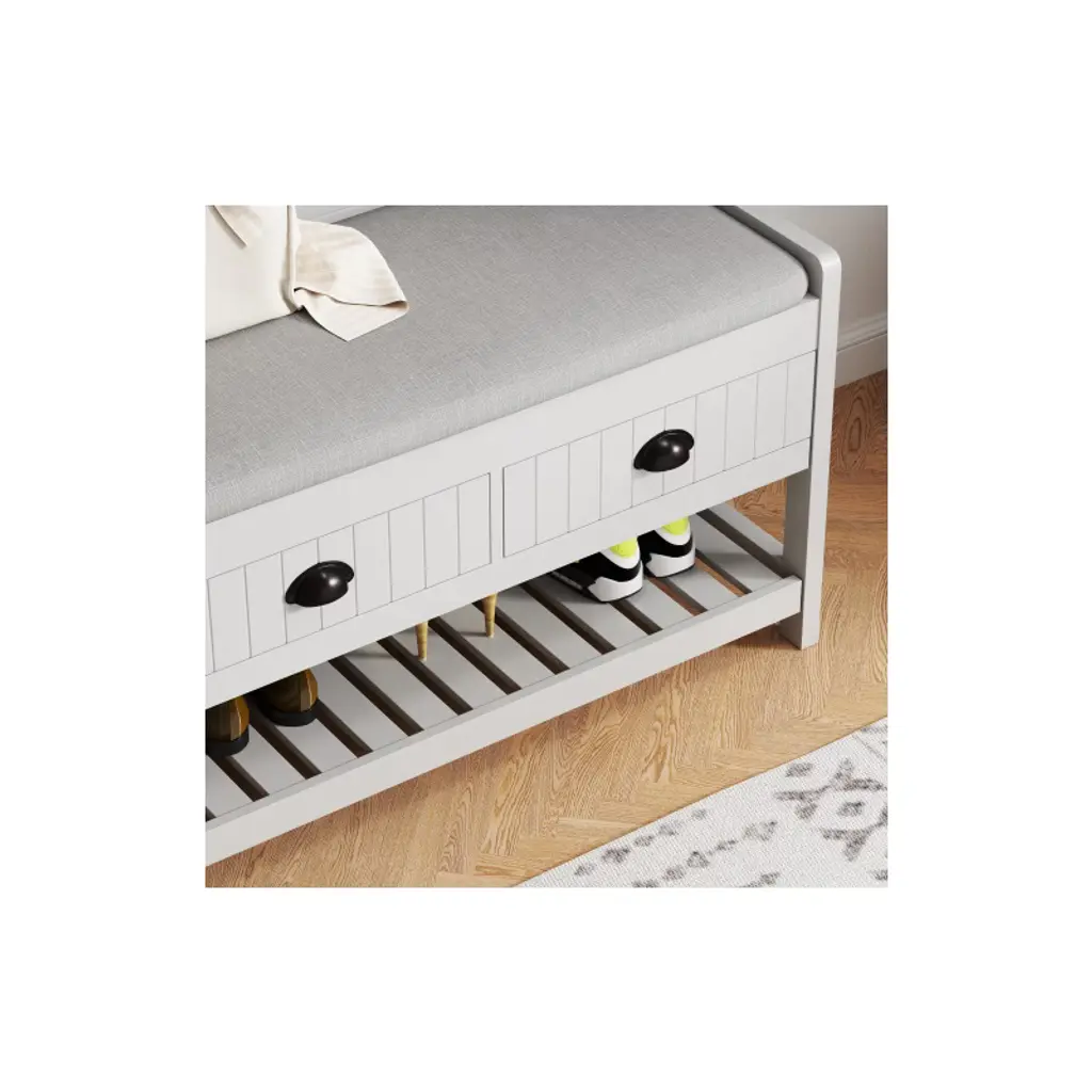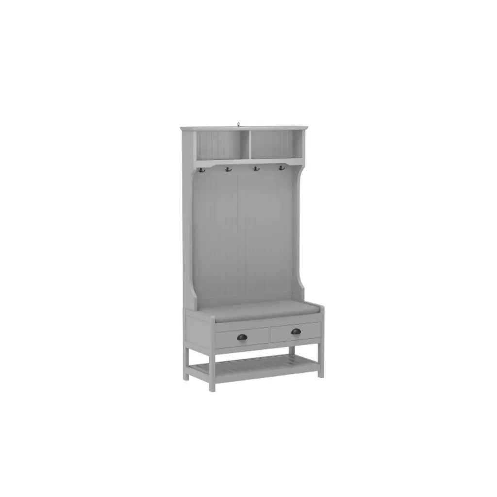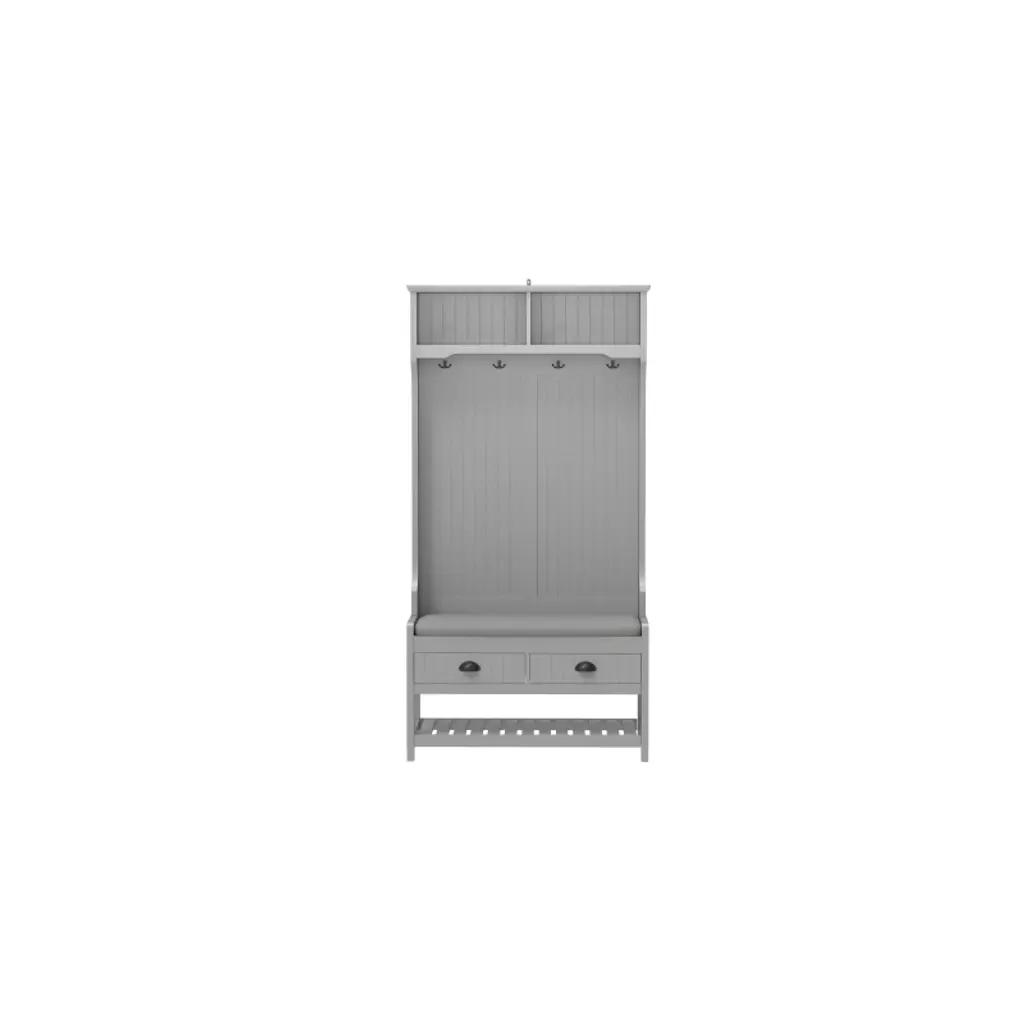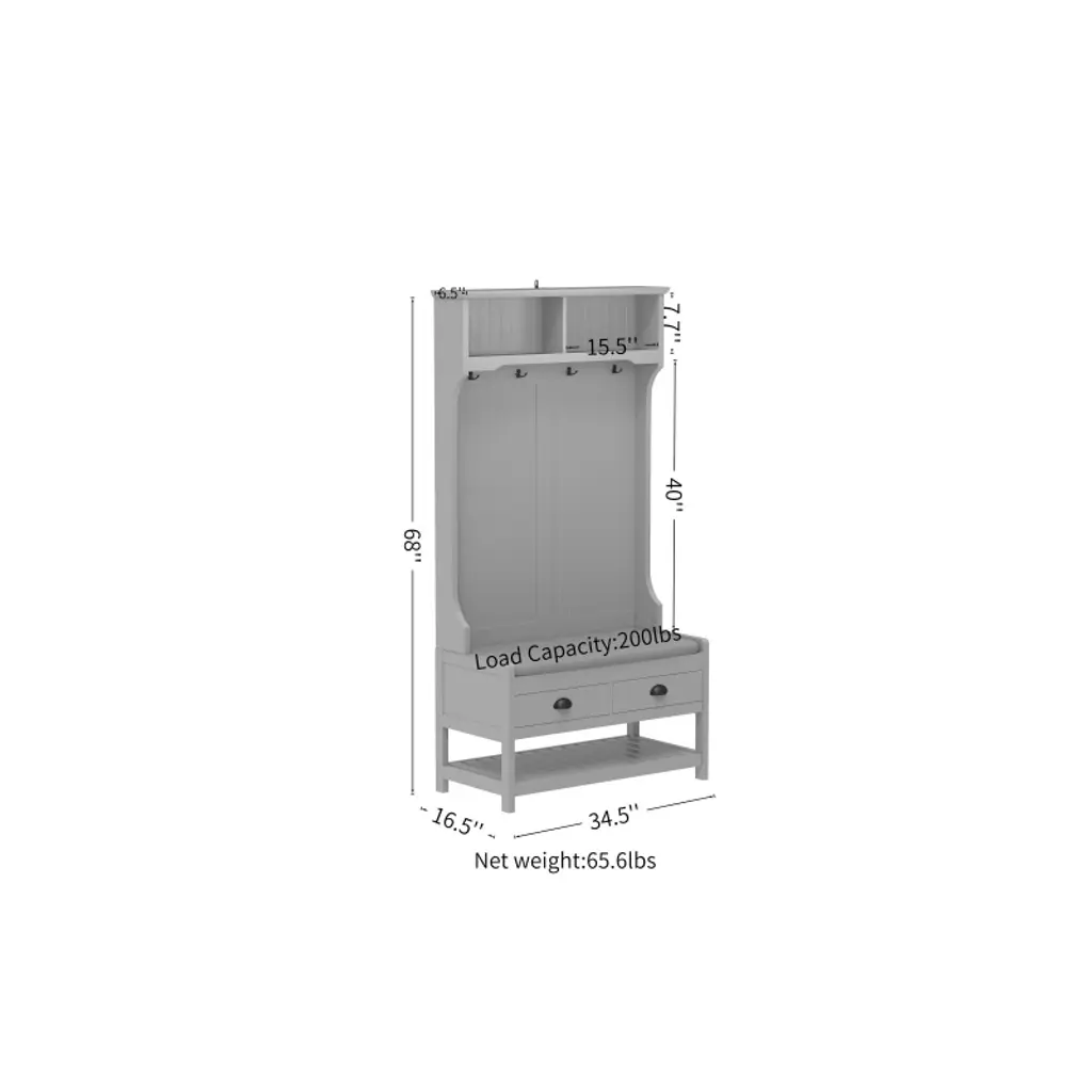 Livareemlen 3-in-1 Hallway Garment Racks With 2 Storage Drawer And 4 Coat Rack, Wooden Entryway Shoe Rack Bench With Padded Seat Cushion(grey)