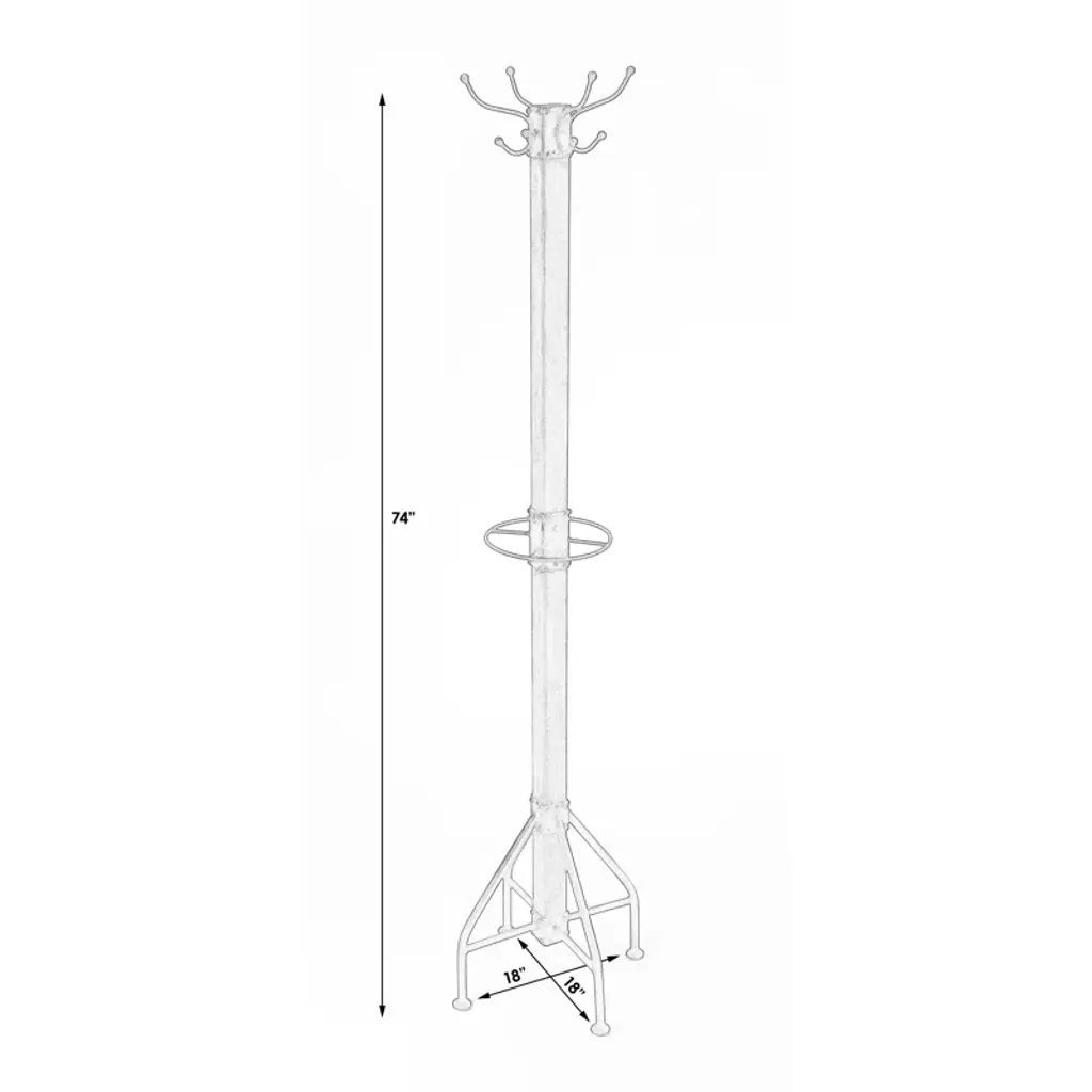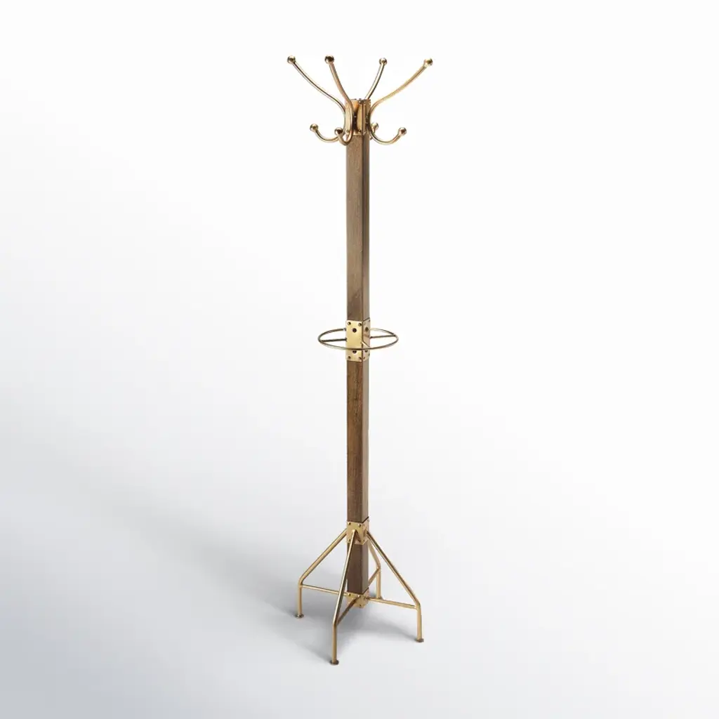 This coat rack is made from solid mango wood and iron, giving it a stylish mixed-material look that's sure to complement your entryway. The base is made from metal and supports the center wooden rod with a finish for a hint of rustic flair. A center ring gives you a spot to hang your umbrellas, while four C-shaped hooks can catch your coats, scarves, and hats. It measures 74" tall and 18" wide, so it won't take up too much room in your foyer or mudroom.