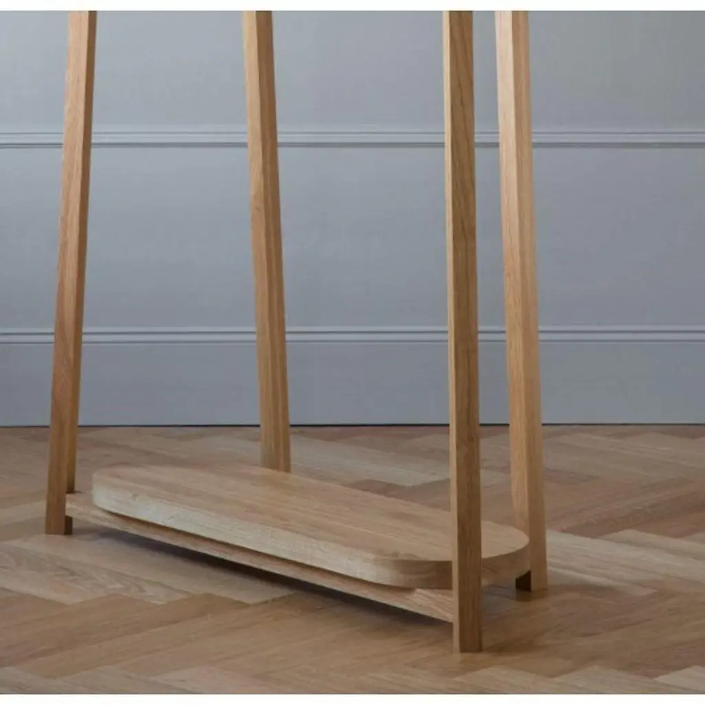 Lonna coat rack, large by Made By ChoiceDimensions: 100 x 39 x 170 cm ( rack length 85 cm, shoe shelf)Materials: oakAlso available: custom color, small & medium.Lonna furniture series was originally introduced as part of a café and sauna interior at the historical island of Lonna, right outside the coast of Helsinki. Only recently introduced for the public and now popular destination among young urbanites, this rugged and rocky skerry has a long history serving as a military base and naval demagnetisation station for ships to defend against magnetic mines.About Made by Choice: Nordic Happiness. Nordic Happiness is our grand theme and guiding star. Studies show that Nordic people are among the happiest on Earth. Nordic happiness is composed of authentic values and sustainable choices. The vision of Choice is based on the added value of collective creation while promoting sustainable Nordic values through authentic design. Rooted in the traditions of Finnish woodworks, Made by Choice is a creative powerhouse of collaborative thinkers, believers and makers, establishing a global brand for the 21st century. Committed to producing durable, bold and innovative designs, we combine contemporary woodworking methods and modern technology. Halikko is home to our 4000 square metre campus where we turn abstract concepts into tangible objects. Our team in our office in Helsinki coordinates all operations and installations. Made by Choice's agile, purpose driven approach means all new products are developed on demand, for a specific project and need, and carries the authentic story of it's reason of existence. Our products are developed and manufactured at our own factory in south-western Finland by some of the best craftsmen in the world. Choice is inspired by heritage and Nordic urban lifestyle. We are driven to explore the boundaries of our discipline to create new narratives. Choice collaborates with leading designers and ambitious interior architects on site-specific projects to create new urban spaces.Choice was founded by Lasse Laine, Sebastian Jansson and Niclas Ahlström – based on the common vision and mutual values to create a distinctive, value-driven brand and a new design heritage.