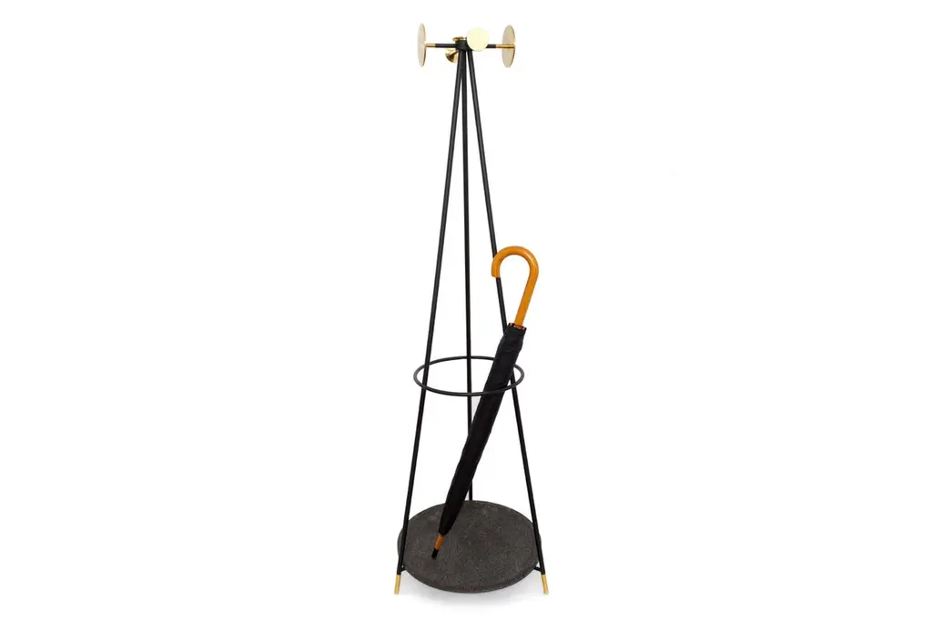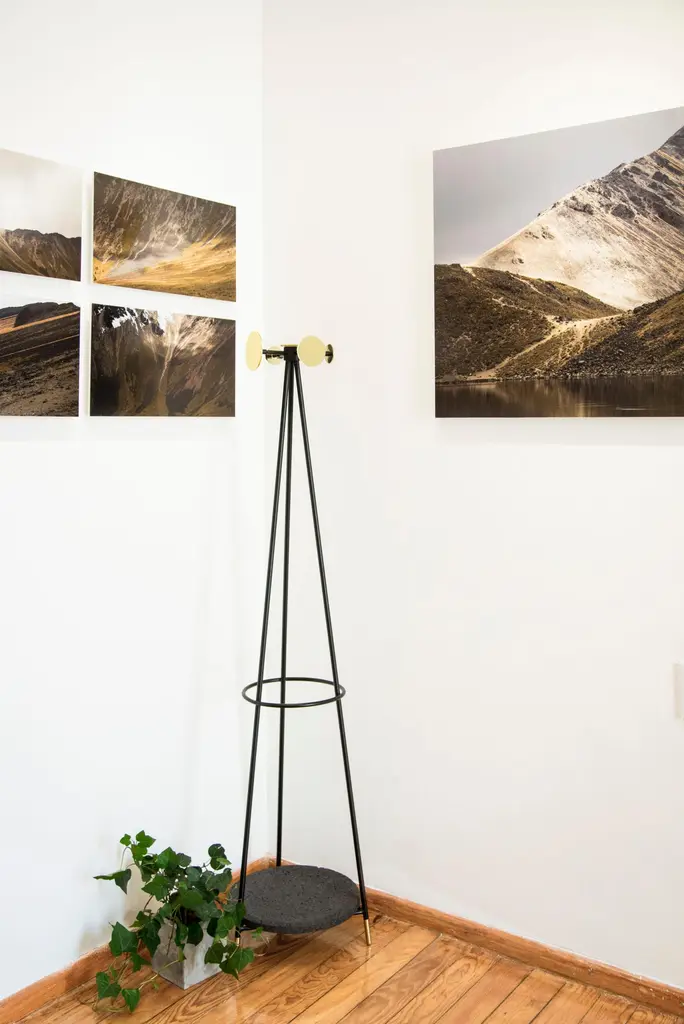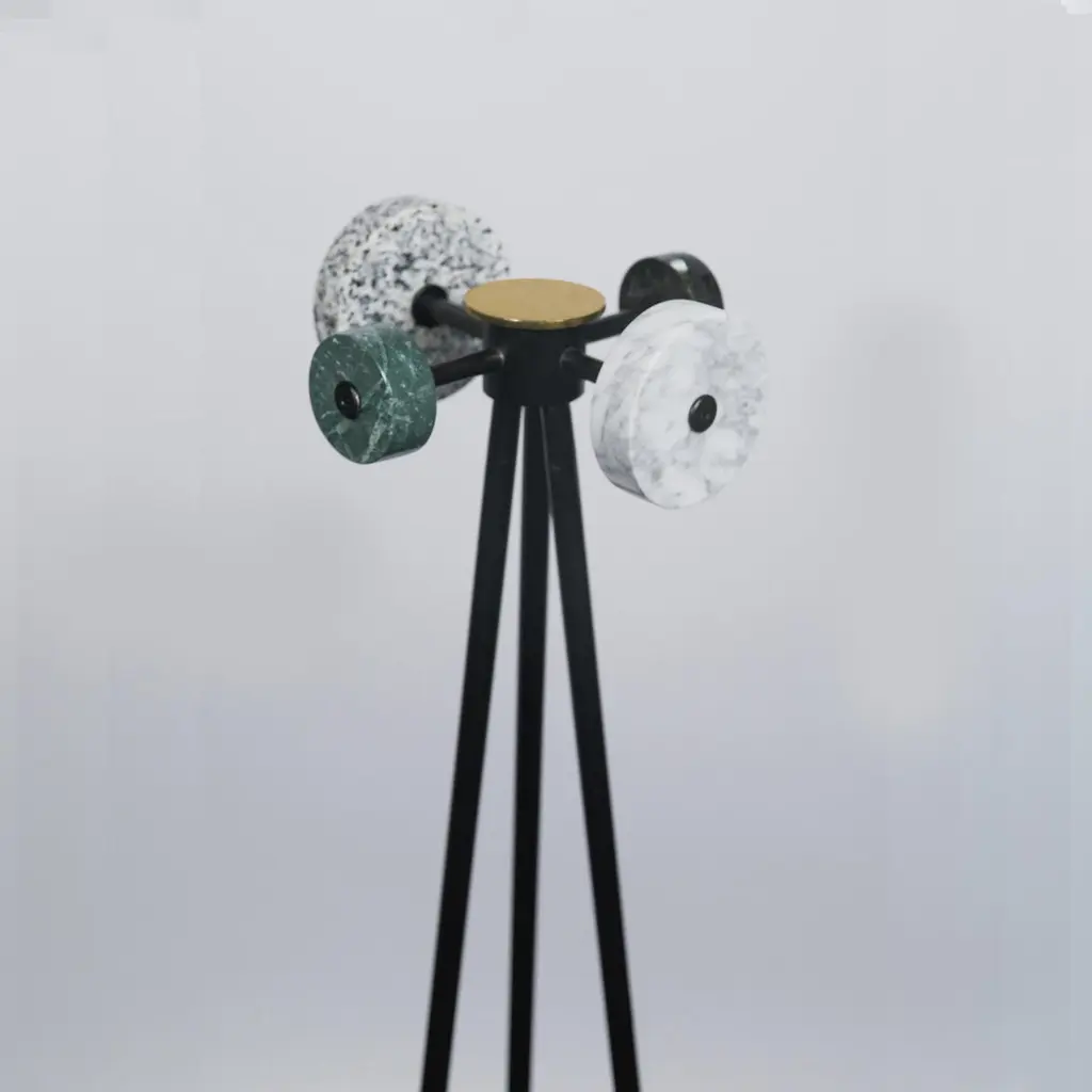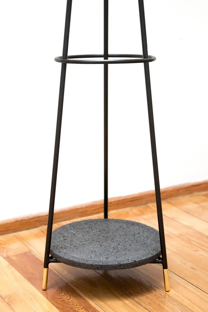 Marble coat stand by Comité de ProyectosDimensions: 40 x 40 x 145cmMaterials: Marble, metal, brass detailsThe hooks of this coat rack are made from leftover marble slabs that we collected from our marble worker's workshop. The body is made of metal rod finished with electrostatic matte black paint and has turned brass details on the legs.We are an interior and furniture design firm founded in 2014 by Andrea Flores and Lucía Soto in Mexico City.We study the relationship between people and spaces making an x-ray of the lives of our clients in each project to offer an aesthetic proposal and a set of spatial solutions that promote the dynamics of integration between individuals and the spaces to be inhabited.Our objects are divided in two: products and collection. Products are those that arise from the specific needs of a project. The collection objects are the result of a work of reflection and aesthetic search. We think of design as a cultural conductor and it is in the collection objects that we find a space to communicate what motivates us.