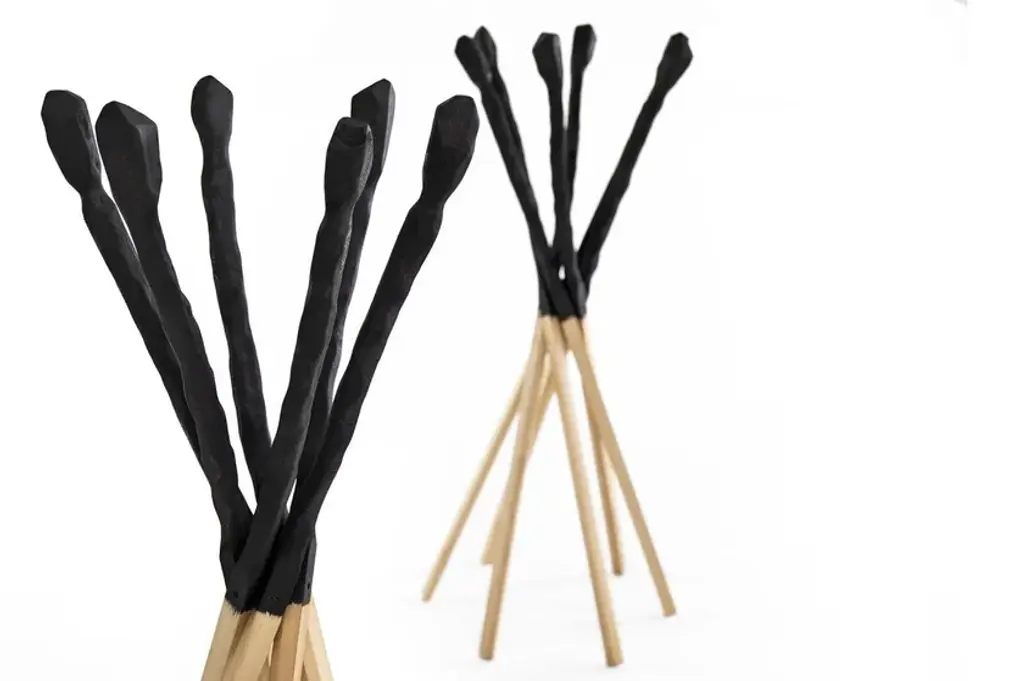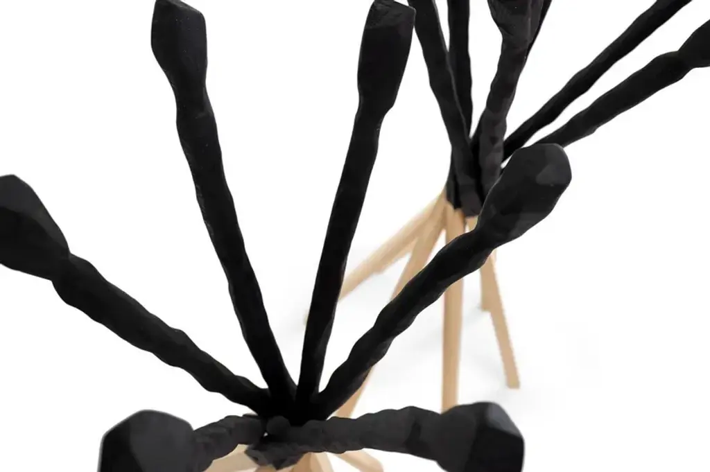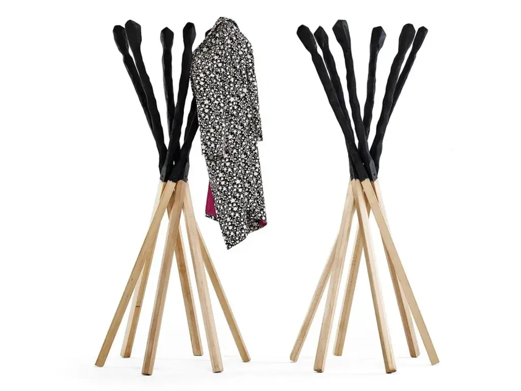 Match is a coat hanger in solid beech in black stained finish and natural oil. Match wants to remember the match consumed by the flame. Six wooden sticks joined together to compose a practical and coat stand.
