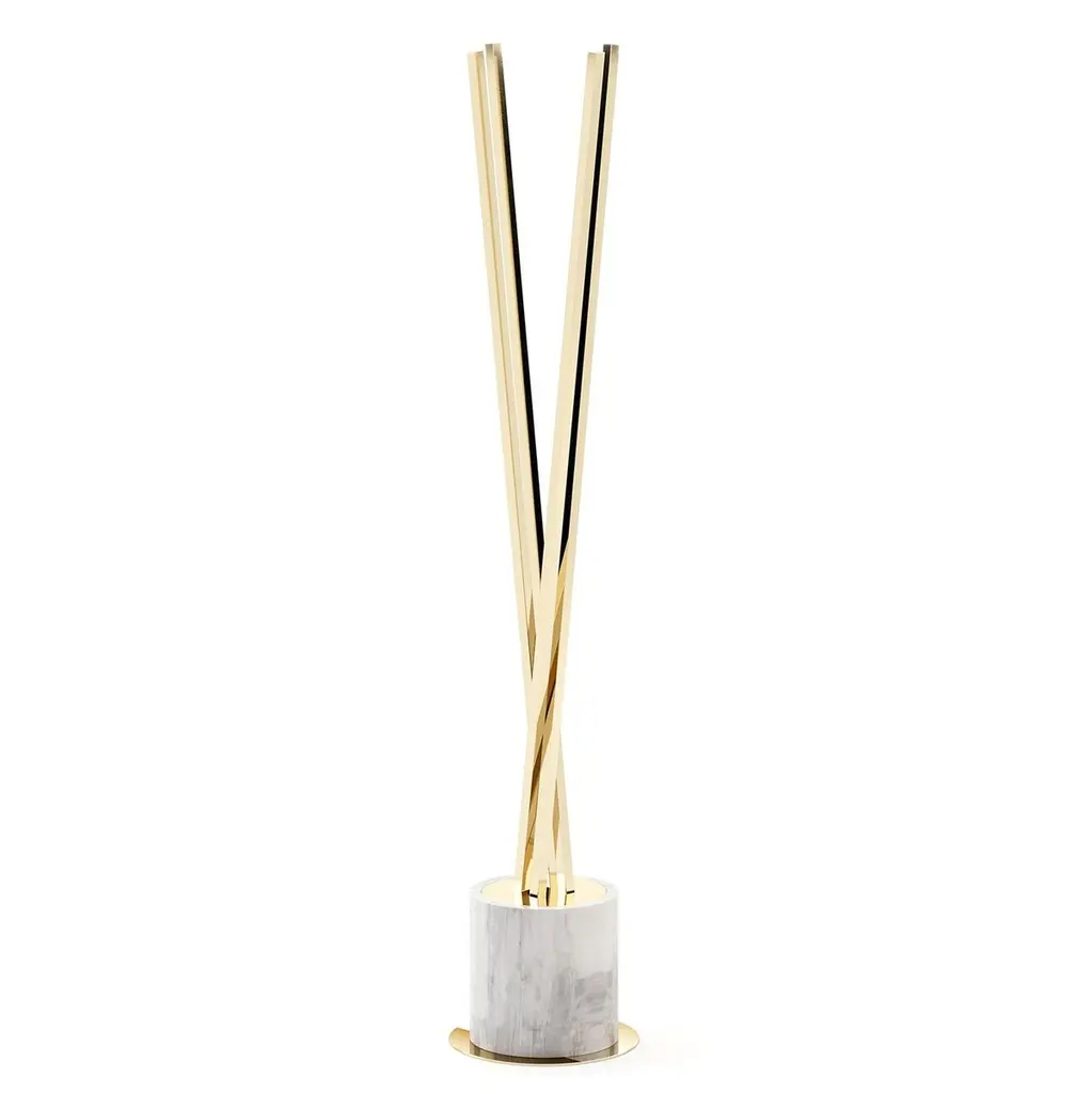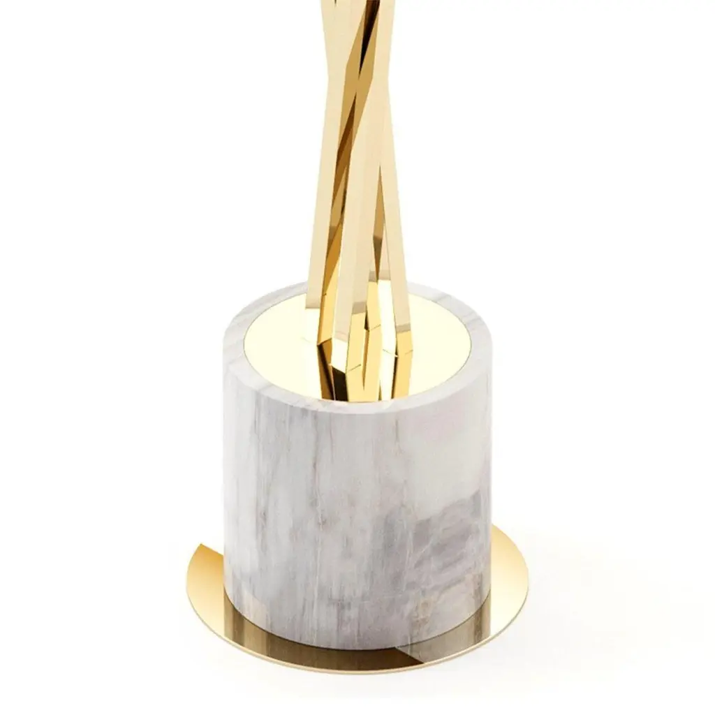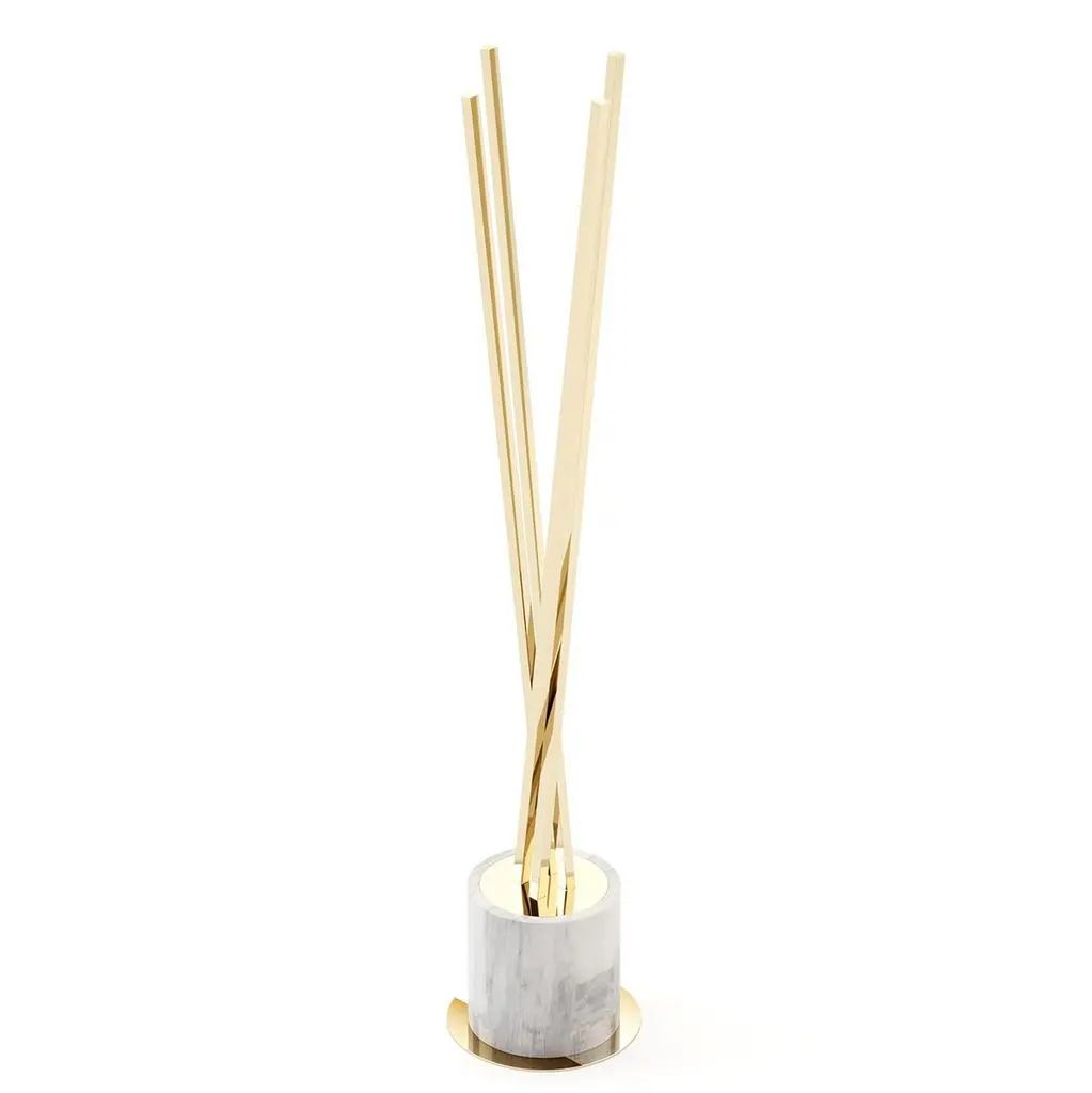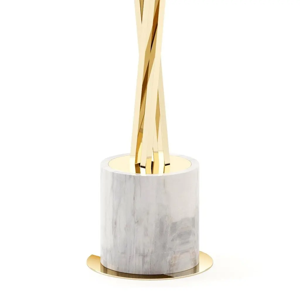 Coat rack Mikado with polished white marble basewith polished stainless steel bars in gold finish.Also available with other marble finish and otherstainless steel finish, on request.