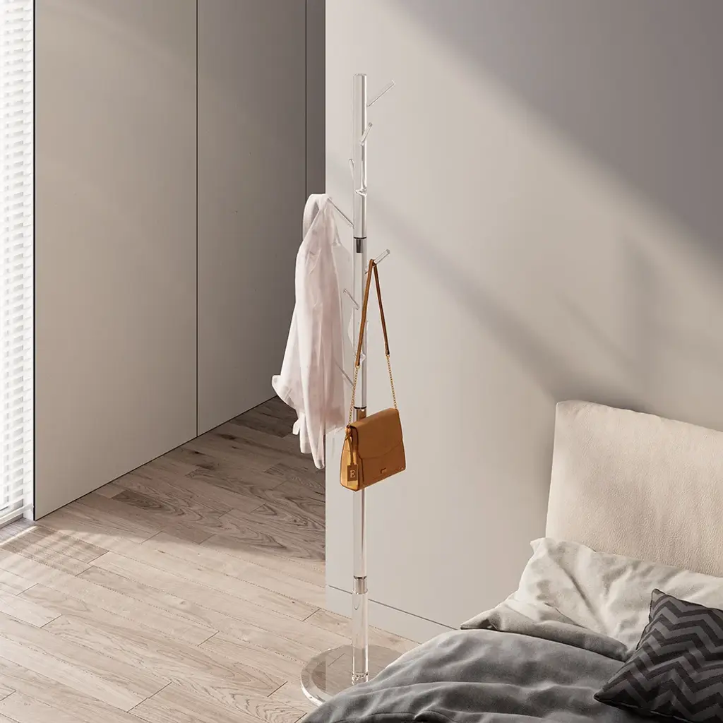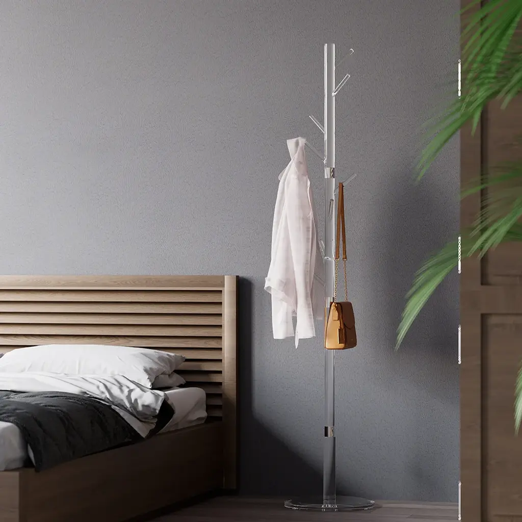 Minimalist Clear Tree Coat Rack Stand Acrylic Coat Hanger Stand With 8 Hooks