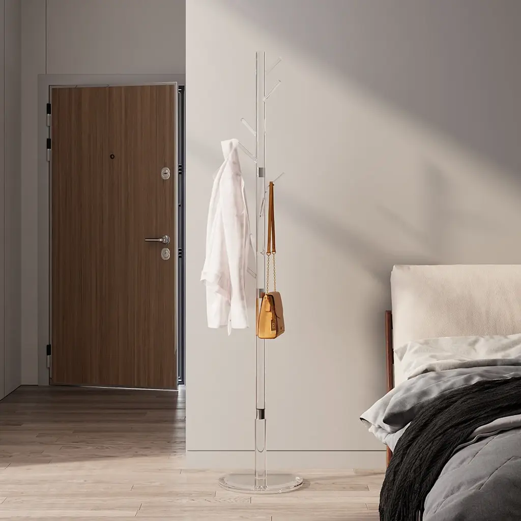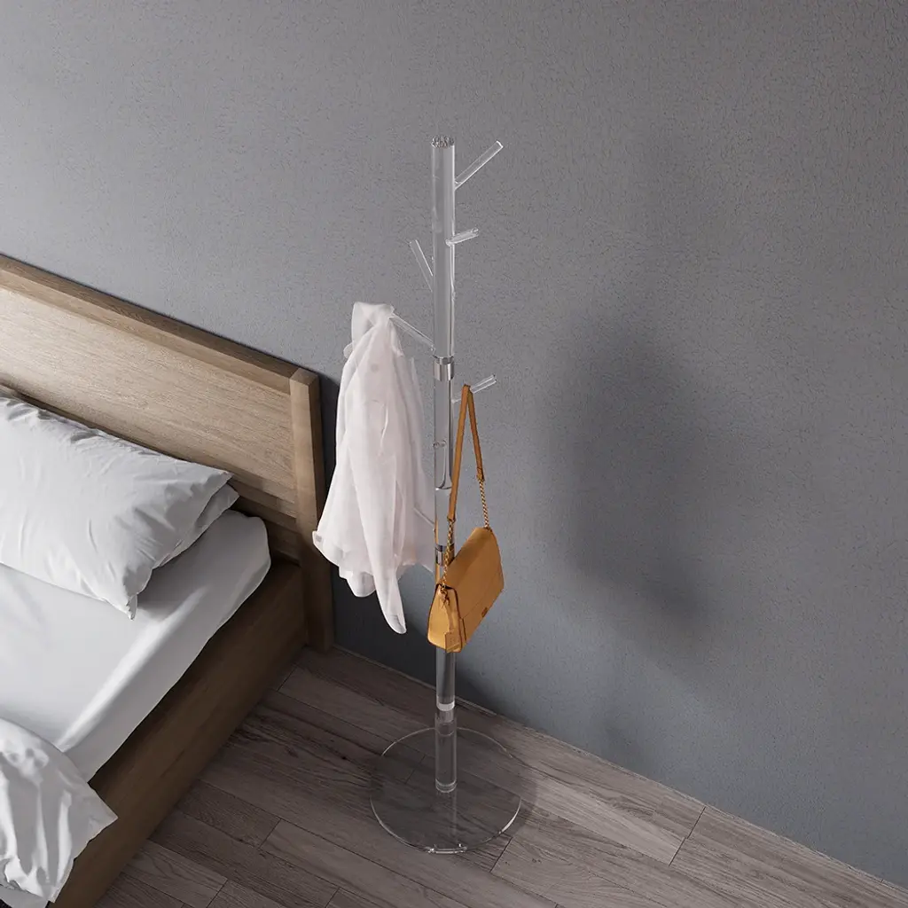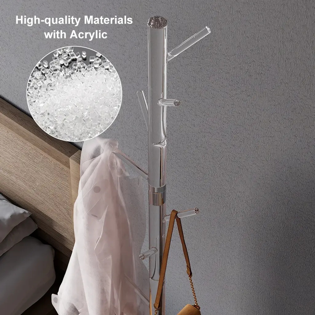 Minimalist Clear Tree Coat Rack Stand Acrylic Coat Hanger Stand With 8 Hooks
