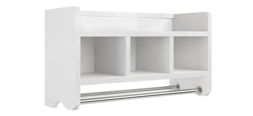 Keep your entryway looking organized with a touch of mixed-material style with the Mixed Material Entryway Organizer from Brightroom™. Featuring a shelf-like design, this entryway organizer comes with hooks at the bottom for a perfect blend of functionality and style. The light-tone wood shelf complements the white metal frame for an appealing look that suits a variety of aesthetics. Simply display your decorative items and plants on the shelf and organize your bags and other items on the hooks.Brightroom™: See your space in a new light.