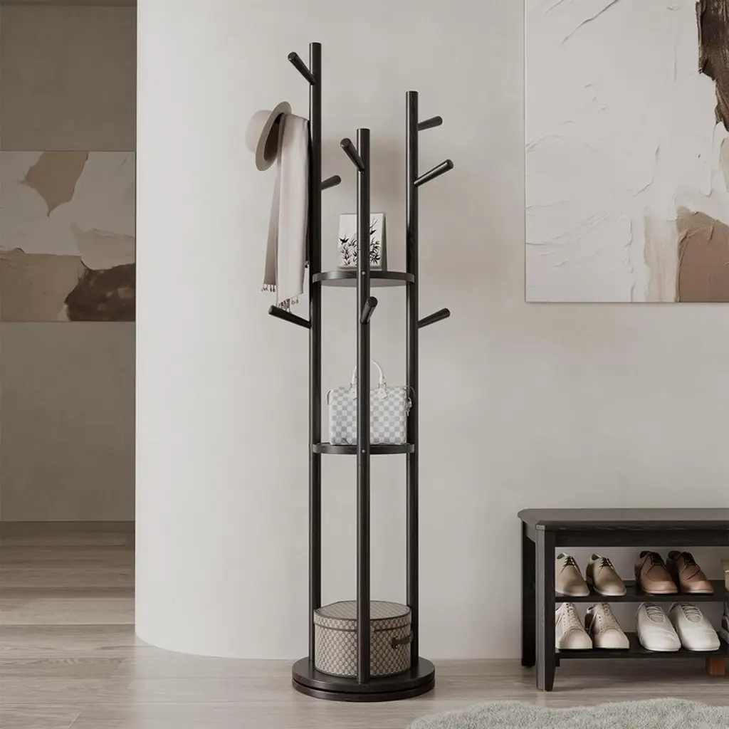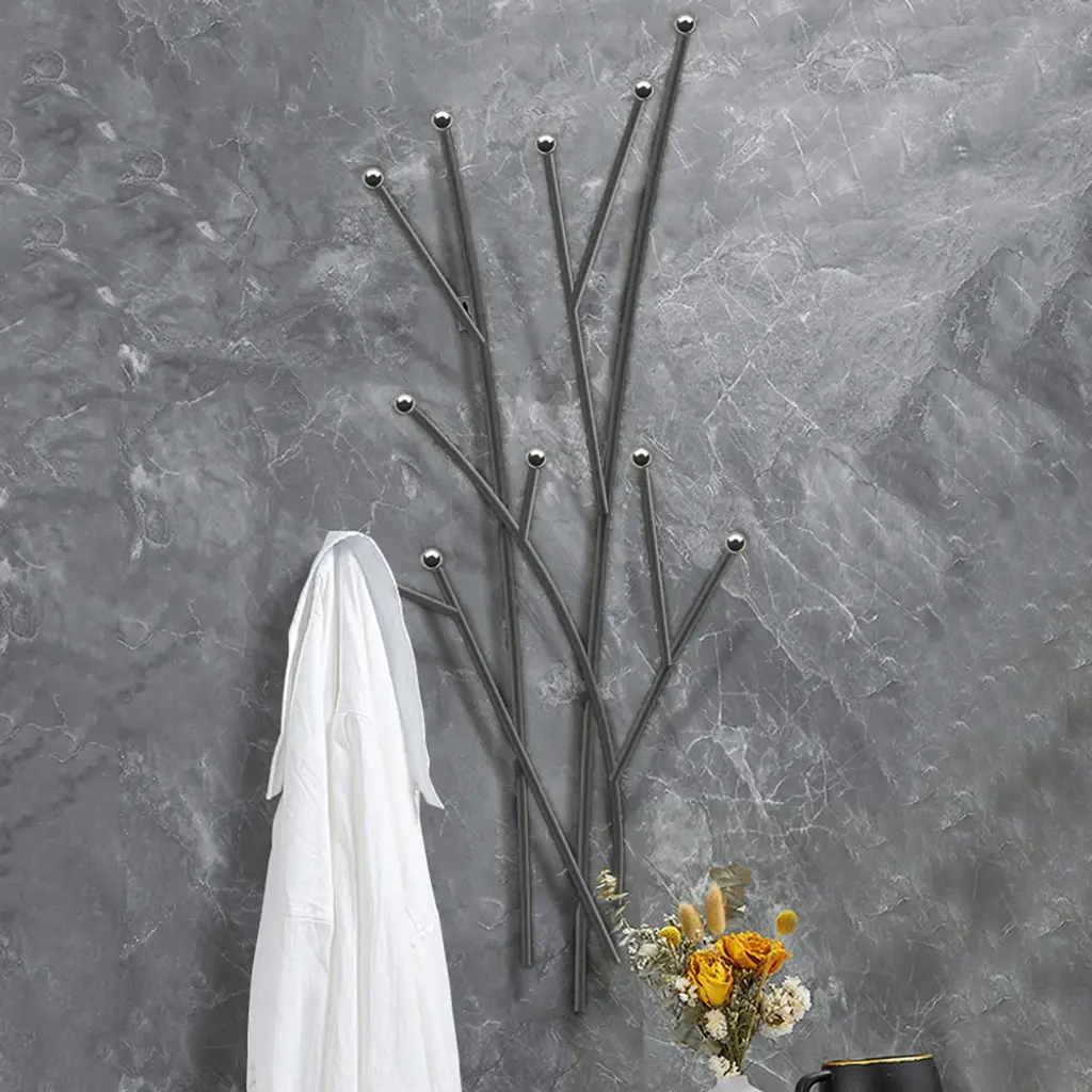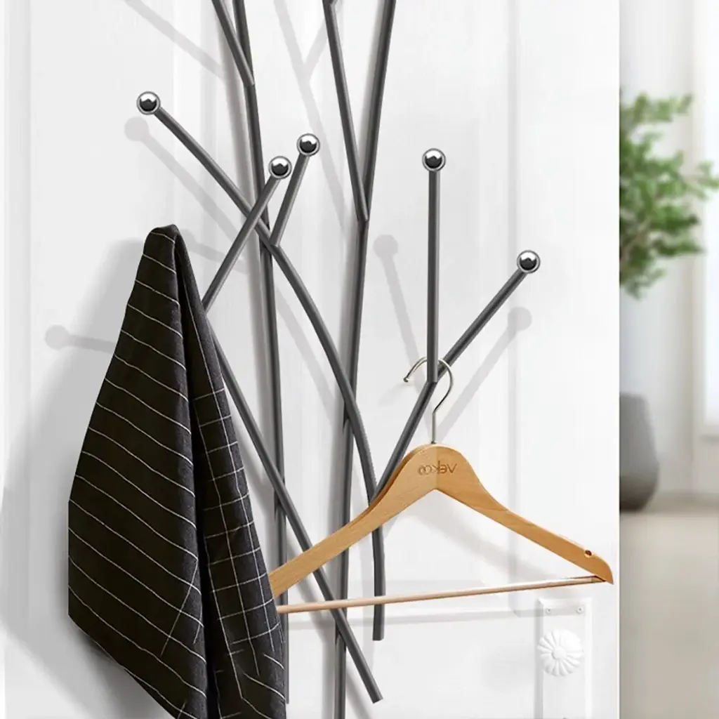 Modern 11-Hook Wall Mounted Coat Rack In Black With Tree Branch Shape