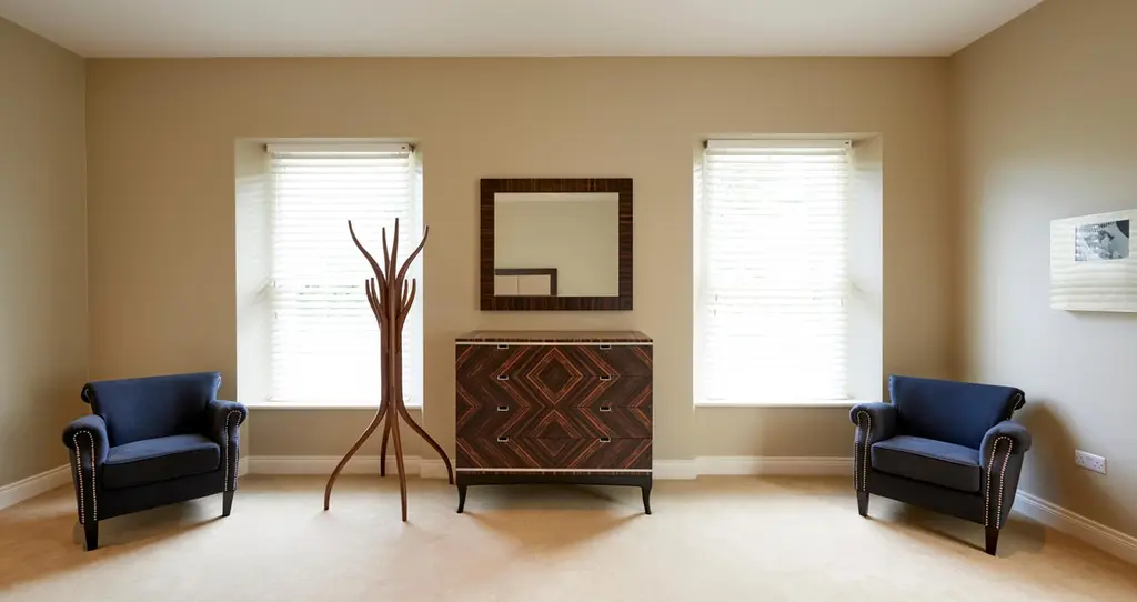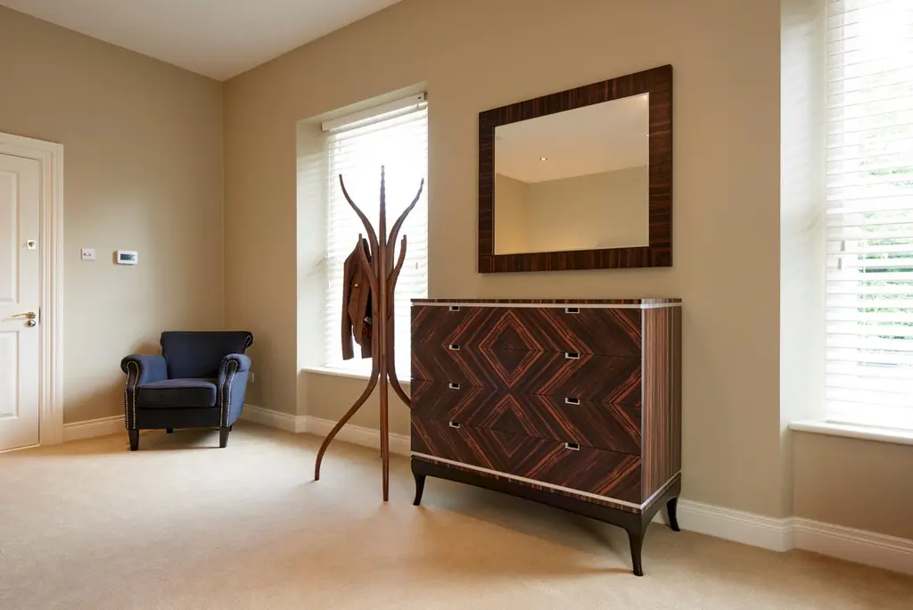 Designed by Tim Dunleavy, the 'Sappling' coat stand is hand-sculpted to create this elegant, linear form. This piece is constructed using an intricate stack laminating technique which creates a visually striking layered effect when sculpted. The piece is hand finished with natural oil resulting in a sensuous and tactile surface finish.This coat stand and/or hat stand can be commissioned in a variety of timbers to complement existing furniture or interior styling. - Studio photograph of coat stand in solid cherry.- Interior photograph of coat stand in walnut.Designed and made to order in Ireland by Dunleavy Bespoke.