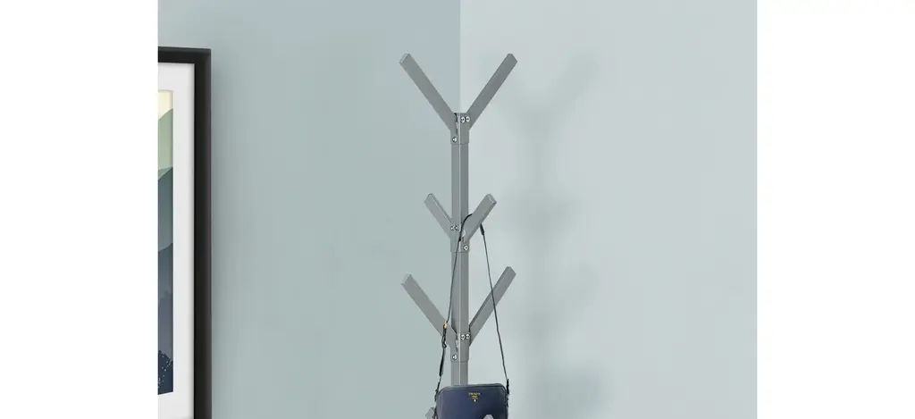 Get those coats and scarves off the chair and onto the Monarch Specialties Coat Rack! Featuring 4 tiers of 8 hanging hooks that easily hold coats, drape your scarves, or hang some beautiful purses as a unique and stylish storage solution. The sturdy 4-pronged base helps to keep the weight properly distributed. With a bold matte finish, this coat rack will anchor that corner of your entryway, bedroom, and your office for a strong, contemporary look. Assembly is required.