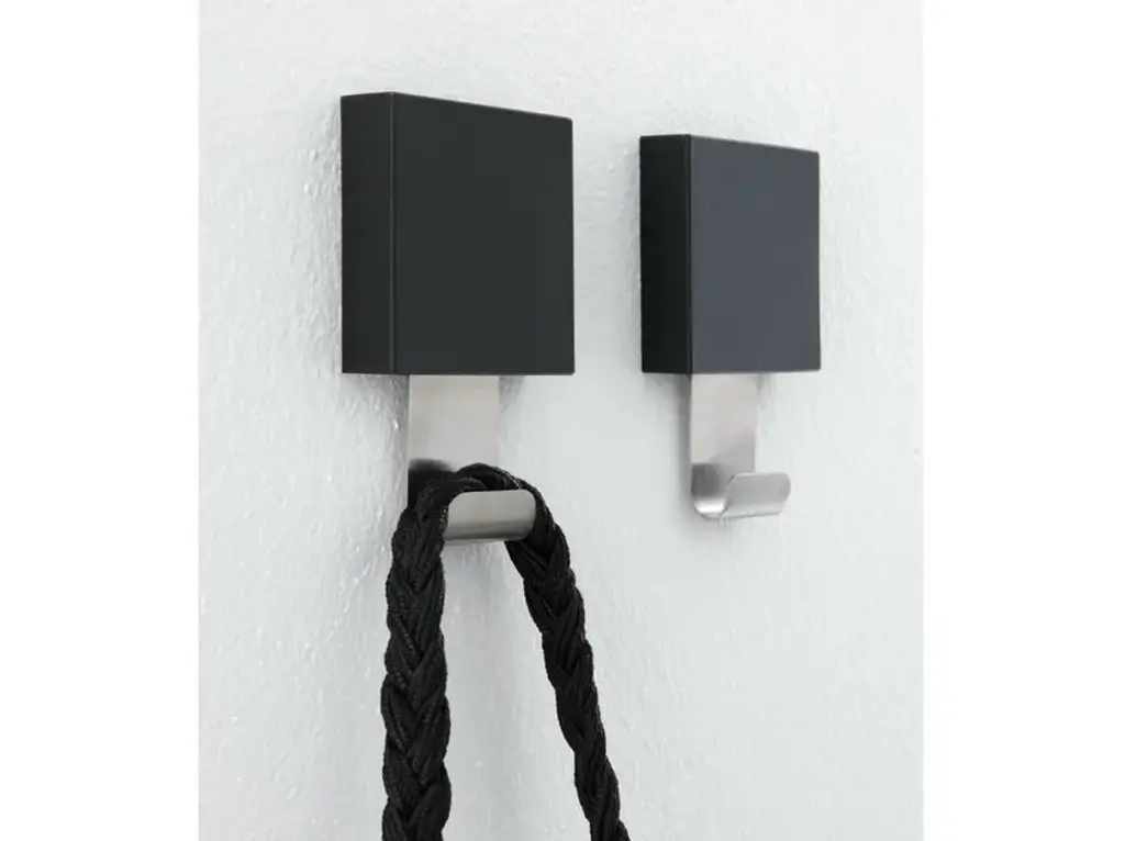 Morbini are a couple of hangers that takes advantage of the adhesiveness of polyurethane gel, an innate feature of the material obtained without the use of glues but produced by a chemical reaction of the material when it comes in contact with the air, this property remains for the whole lifetime of the product. Morbini are realized in soft polyurethane gel with a brushed stainless steel insert that allows small weights to be hanged. Morbini are ideal for the bathroom, in the hall or wherever you need to hang something without drilling the surface.Price refers to one pack with 2 products.