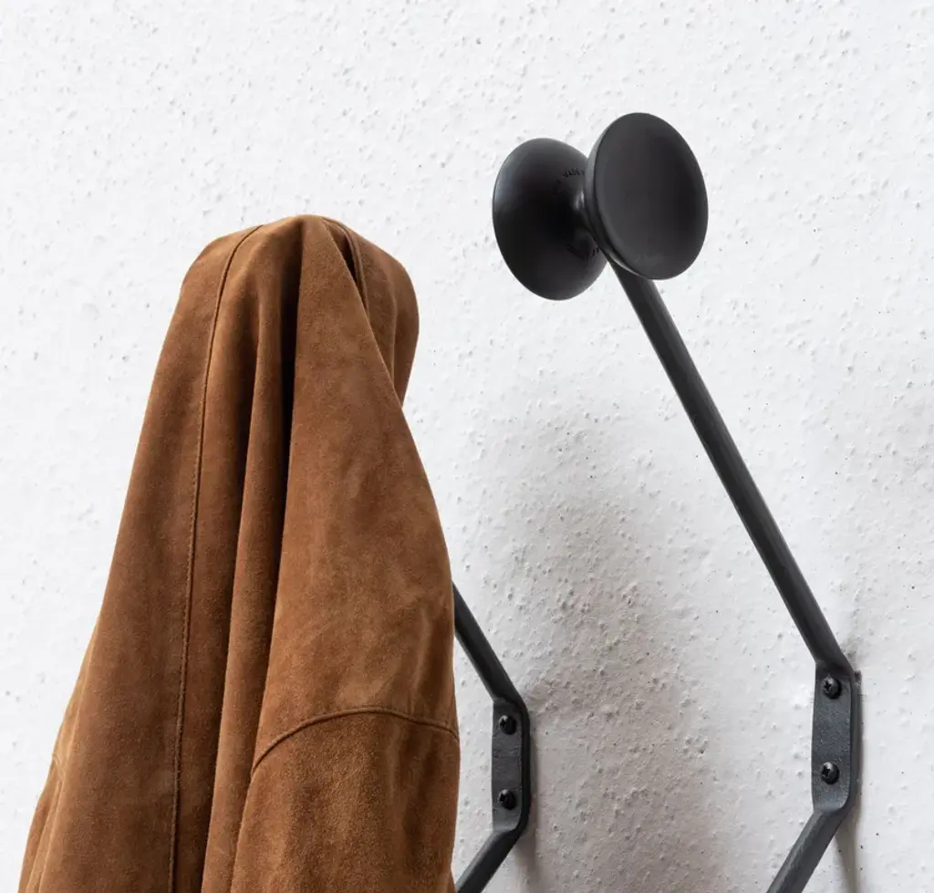 Wall coat hanger.Material: frame in wrought iron painted in polyester powder. Hooks in rubber.The Officina collection explores the possibility of establishing a new creative language through the ancient fabrication process that is iron forging. Throughout history, this technique has been used to create an infinite number of everyday objects and decorative artefacts.Following the tables, chairs and stools launched over the past two years, the collection now expands further with a series of accessories (from coat stands to a clothes valet to candelabras and mirror). All these pieces feature a forged iron structure, with the allure of a raw material handed down through the centuries, alive, with those slight imperfections that once again make each item in this collection unique, with a profoundly refined and elegant spirit.Italian design and traditional craftsmanship are harmoniously combined in the Magis Officina collection, which explores a new creative language through the ancient fabrication process that is iron forging. Throughout history, this technique has been used to create an infinite number of everyday objects and decorative artefacts. The products in this collection feature a typical wrought iron finish that makes them living design objects, and their distinctly industrial feel is guaranteed to create interesting contrasts in any setting. Following the tables, chairs and stools, the collection expands further with a series of accessories, with a low chair, with a twoseater bench and a collection of upholstered pieces (armchair, ottoman, two and threeseater sofas). All these pieces feature a forged iron structure, with the allure of a raw material handed down through the centuries, alive, with those slight imperfections that make each item in this collection unique, with a profoundly refined and elegant spirit.