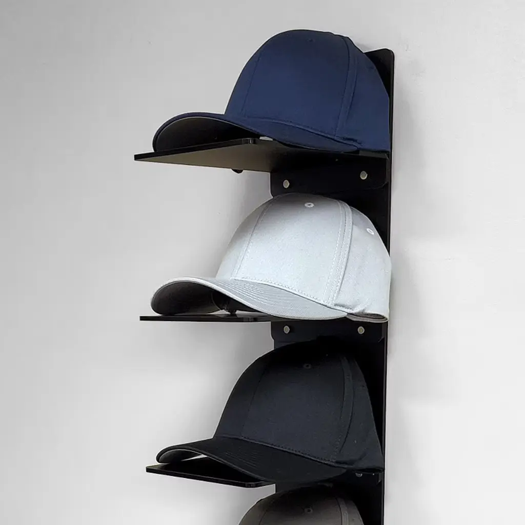Ondisplay Luxe Acrylic Hat Rack Display - Wall Mounted Baseball Cap Organizer (Matte Black)