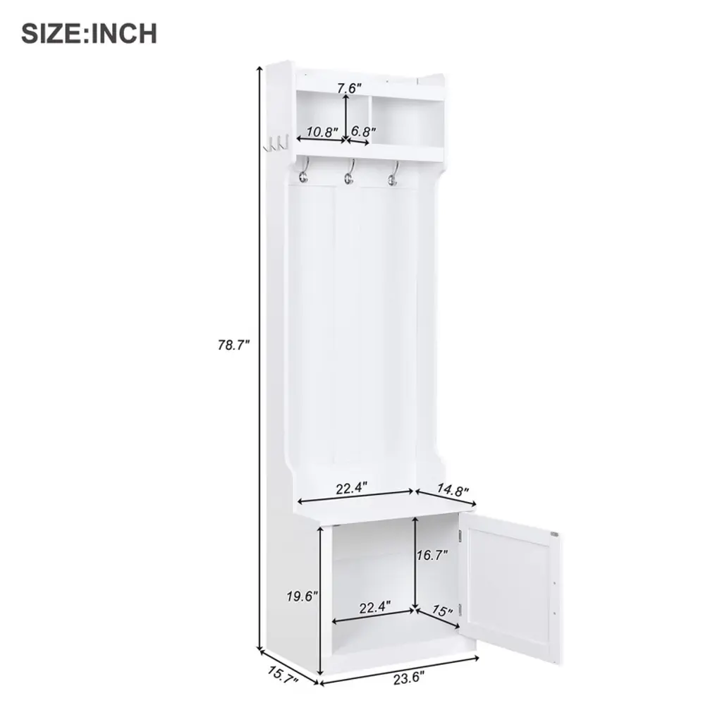 Orrd Minimalist Slim Hall Tree With Cabinet, Coat Rack & Storage Bench, White