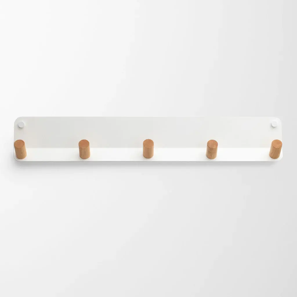 A minimal and modern wall hook that provides an elegant storage option for any room in the house. The Perkins Hook Rail is handcrafted from bent, laser-cut steel and finished with five angled wooden pegs that are thoughtfully sized to keep clothing from stretching when hung. • Made in the U.S. from sustainably sourced North American hardwoods • Available with color matched covers for mounting hardware. Shop the Perkins Collection. Return eligibility:This item may be returned if sent back within 30 days of the delivery date. Please ensure items are unused, have not been installed, and are in original factory condition.