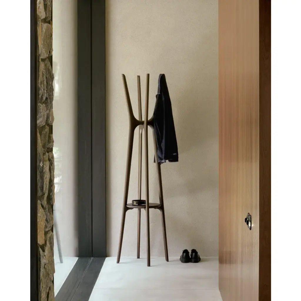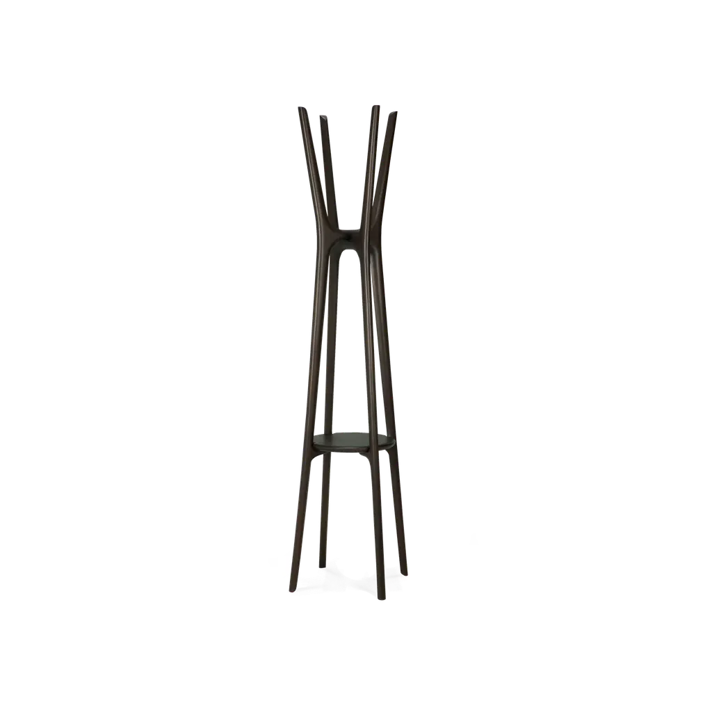 The PI collection honors nature’s design by keeping the strength, curves, and lines, as nature intended. Interesting shapes are discovered in this sleek and stylish, polished imperfect, finish. Each PI item is finished by hand to ensure that the individual character of the wood is respected. The PI coat rack stylishly stores coats, hats, and other personal effects with ease.
