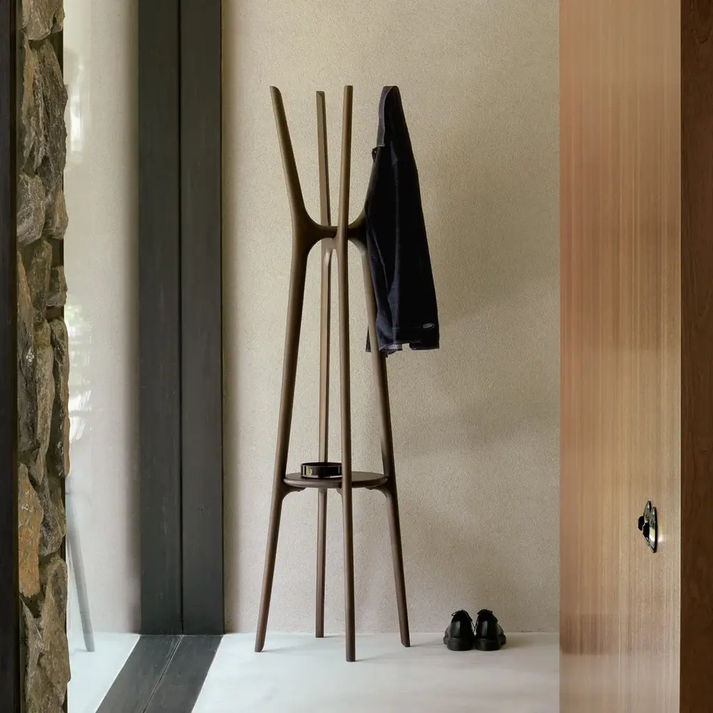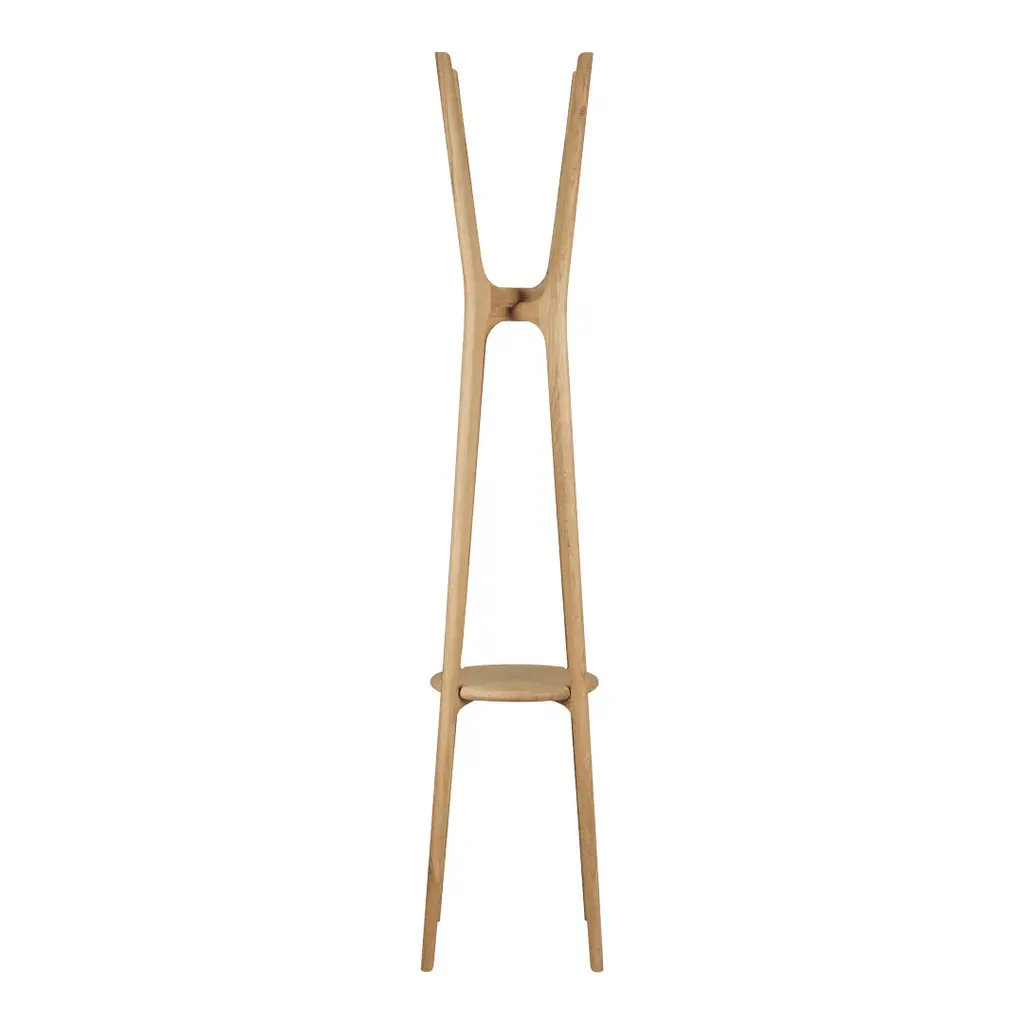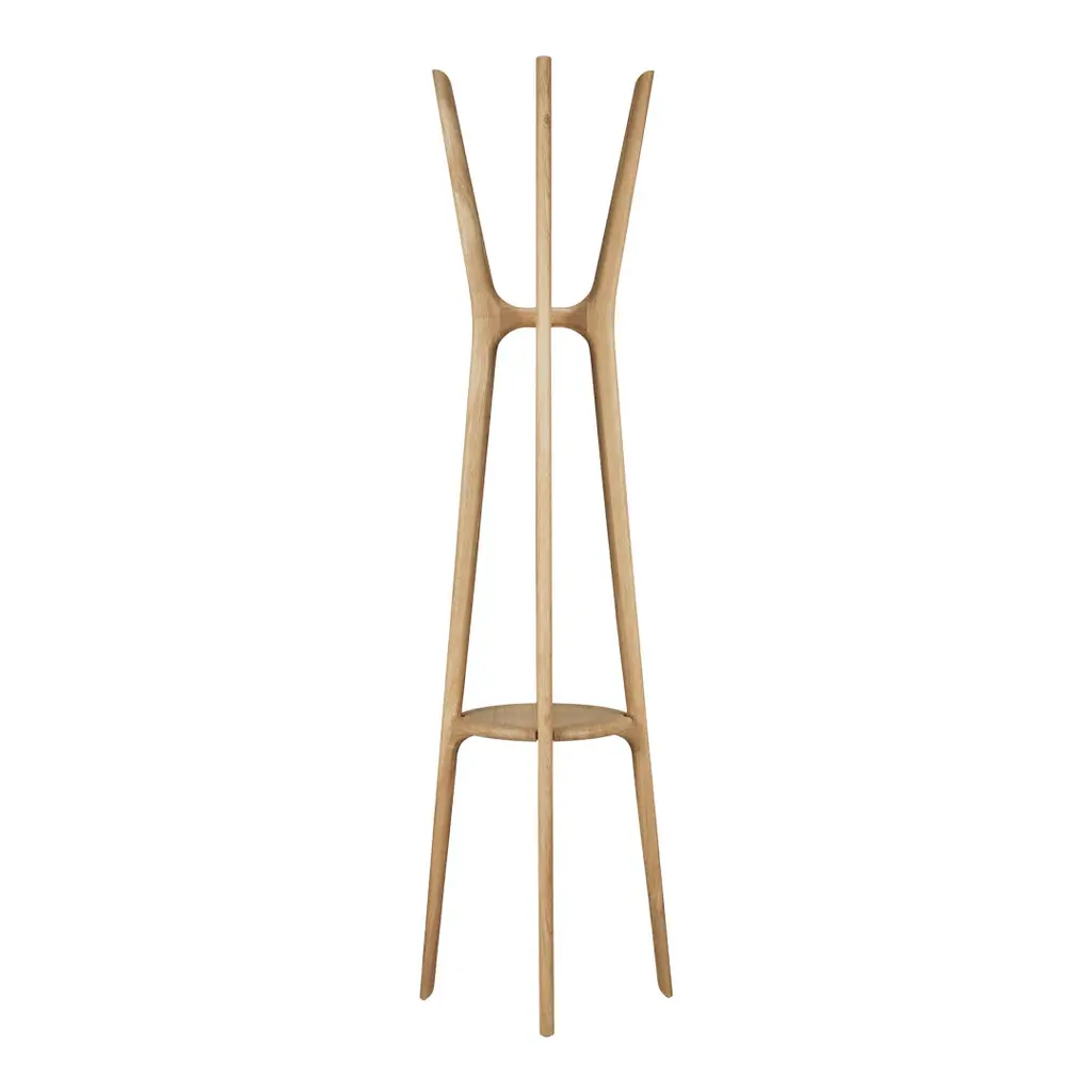 The PI collection honors nature’s design by keeping the strength, curves and lines, as nature intended. Interesting shapes are discovered in this sleek and stylish, polished imperfect, finish. Each PI item is finished by hand to ensure that the individual character of the wood is respected. The PI coat stand stylishly stores coats, hats and other personal effects with ease.