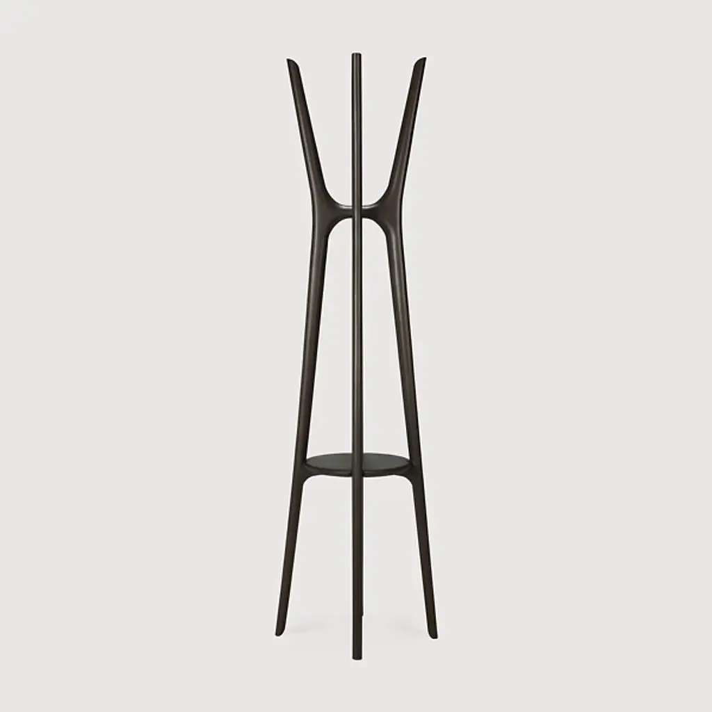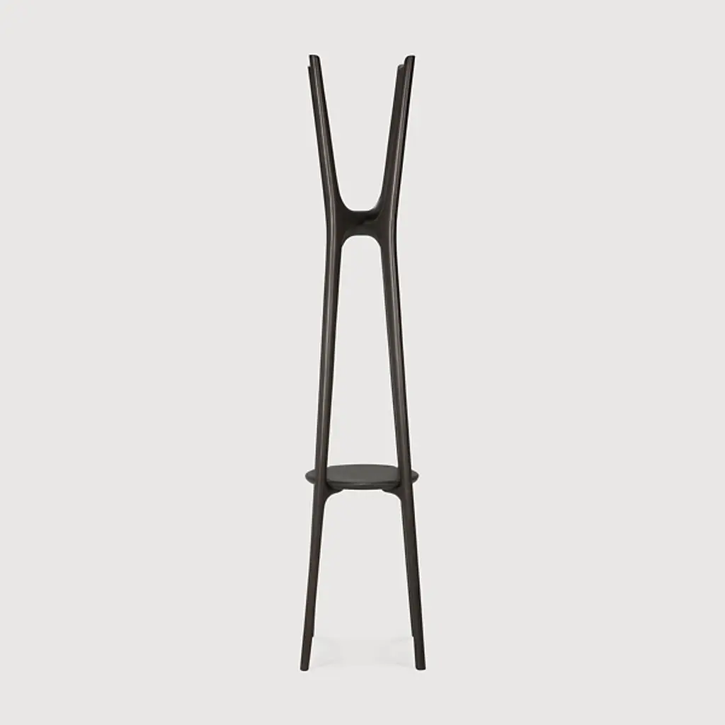 Honoring nature’s abstract lines, the midcentury PI Coat Stand from Ethnicraft keeps wood’s strength and curves of artfully made wood. Designed by Alain Van Havre and hand-finished with a stylishly polished imperfect surface that lends it an individual character, the organic structure respects the unique expressiveness of each piece of wood that comprises its construction. This contemporary stand stores coats, hats, and more with an open, sculptural ease, adding a welcome visual lightness.