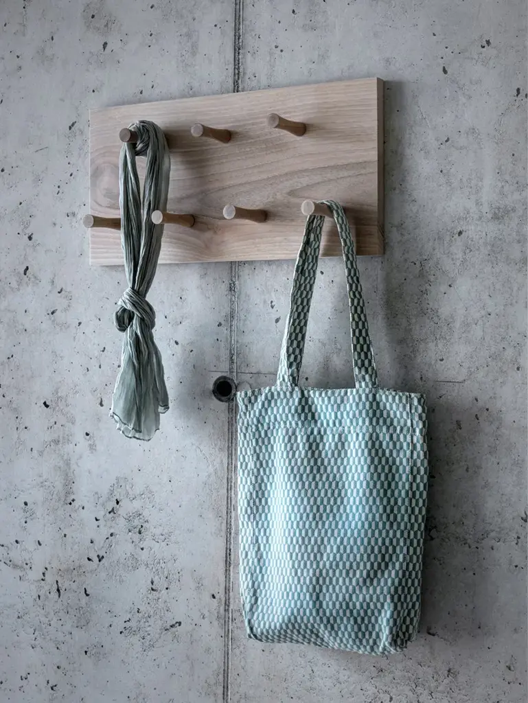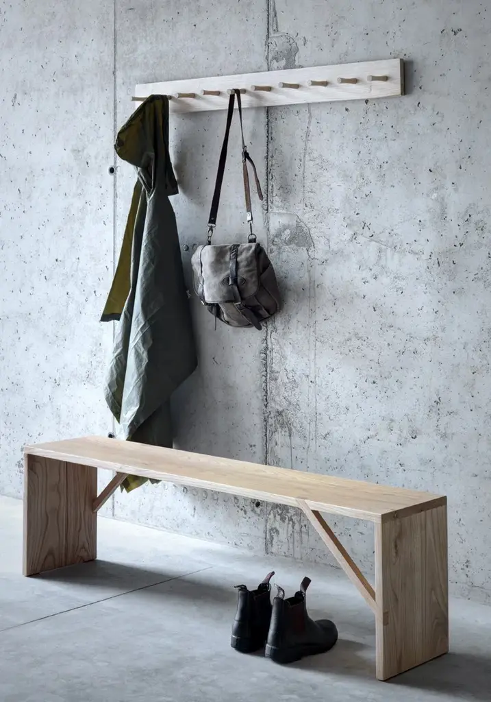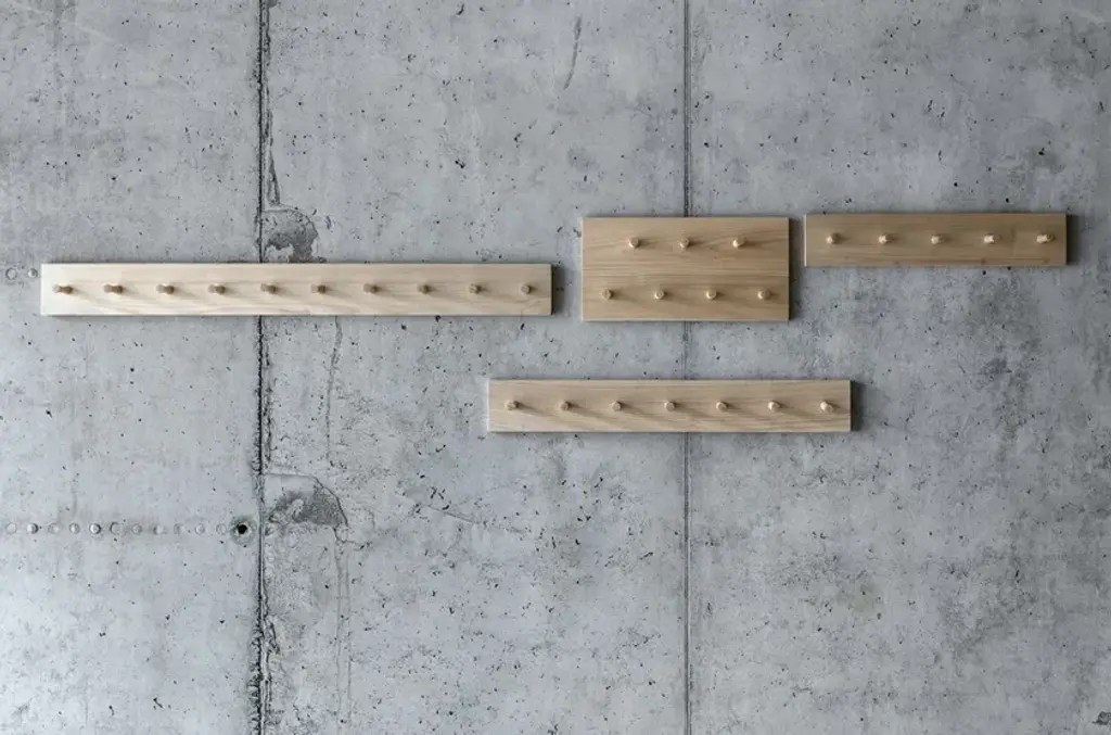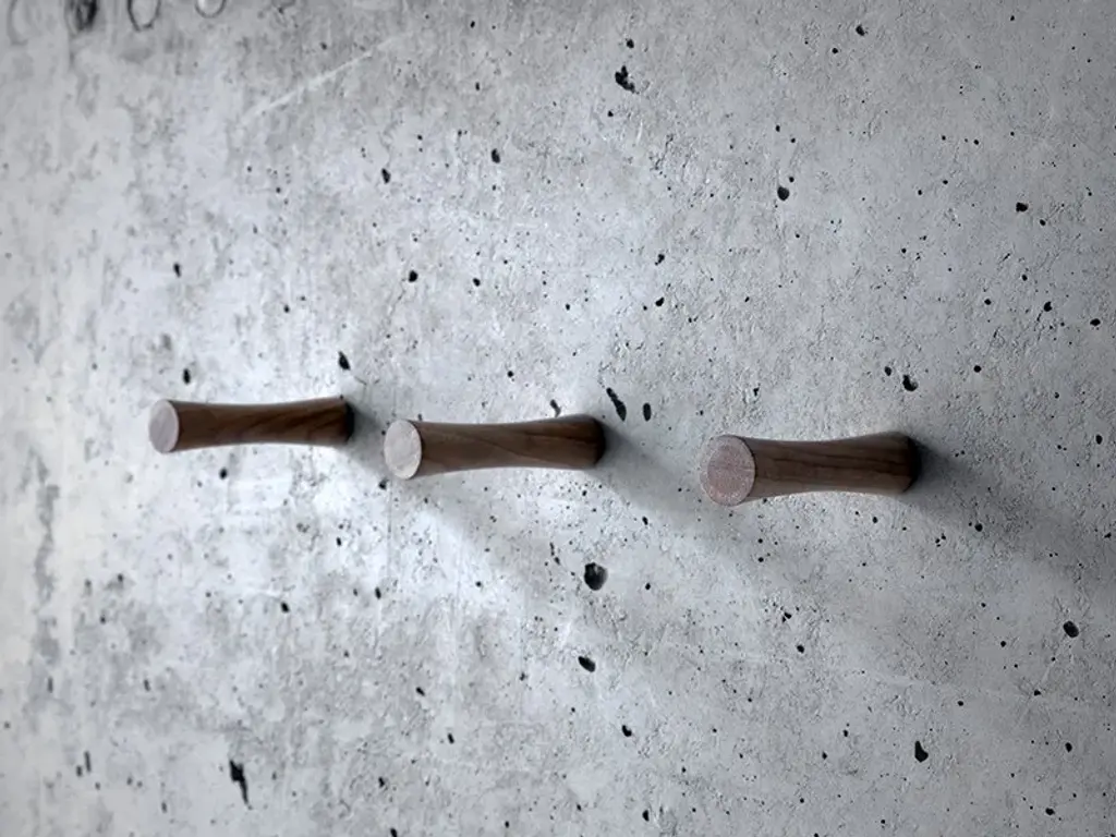 Piol - A coat rack in solid walnut or chestnut with specially tapered wooden pins.Support board in different dimensions and lengths. Wall-wooden single pin is also available.