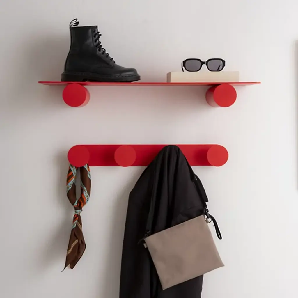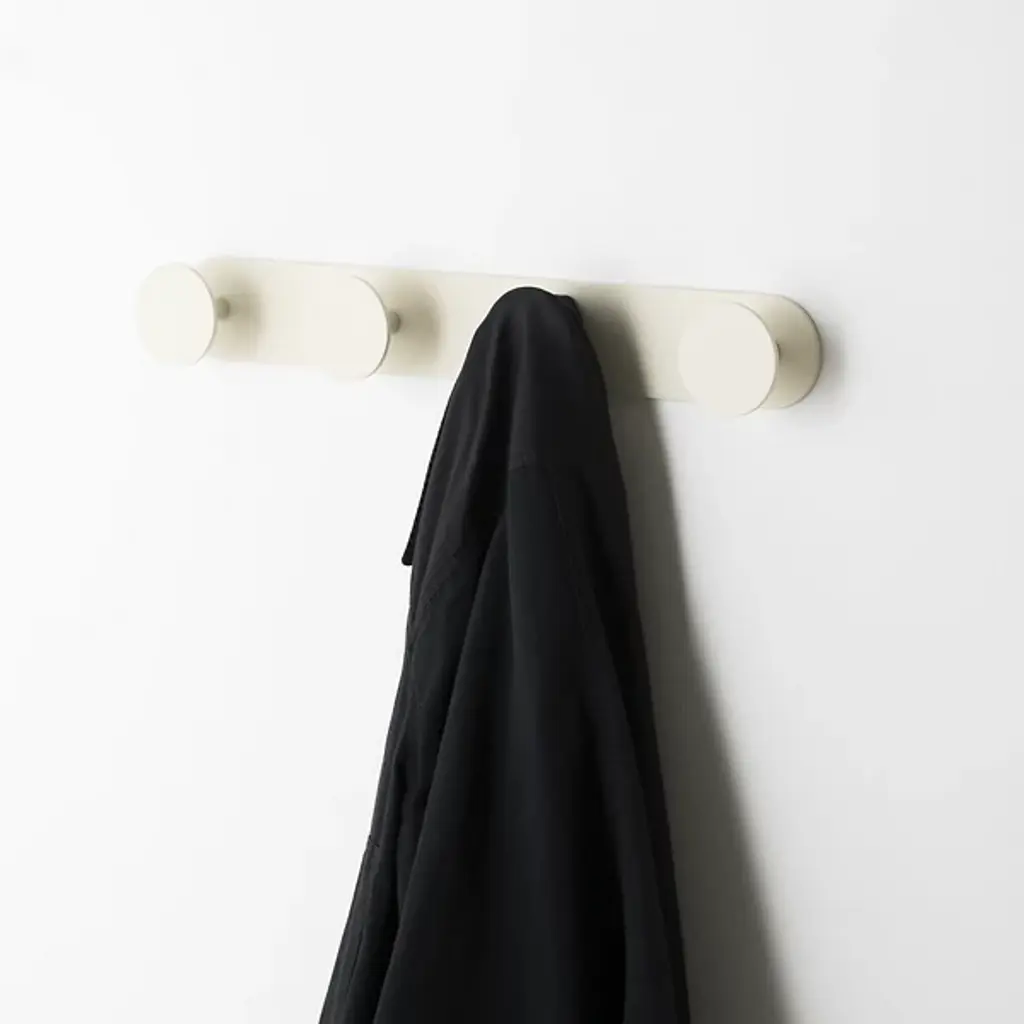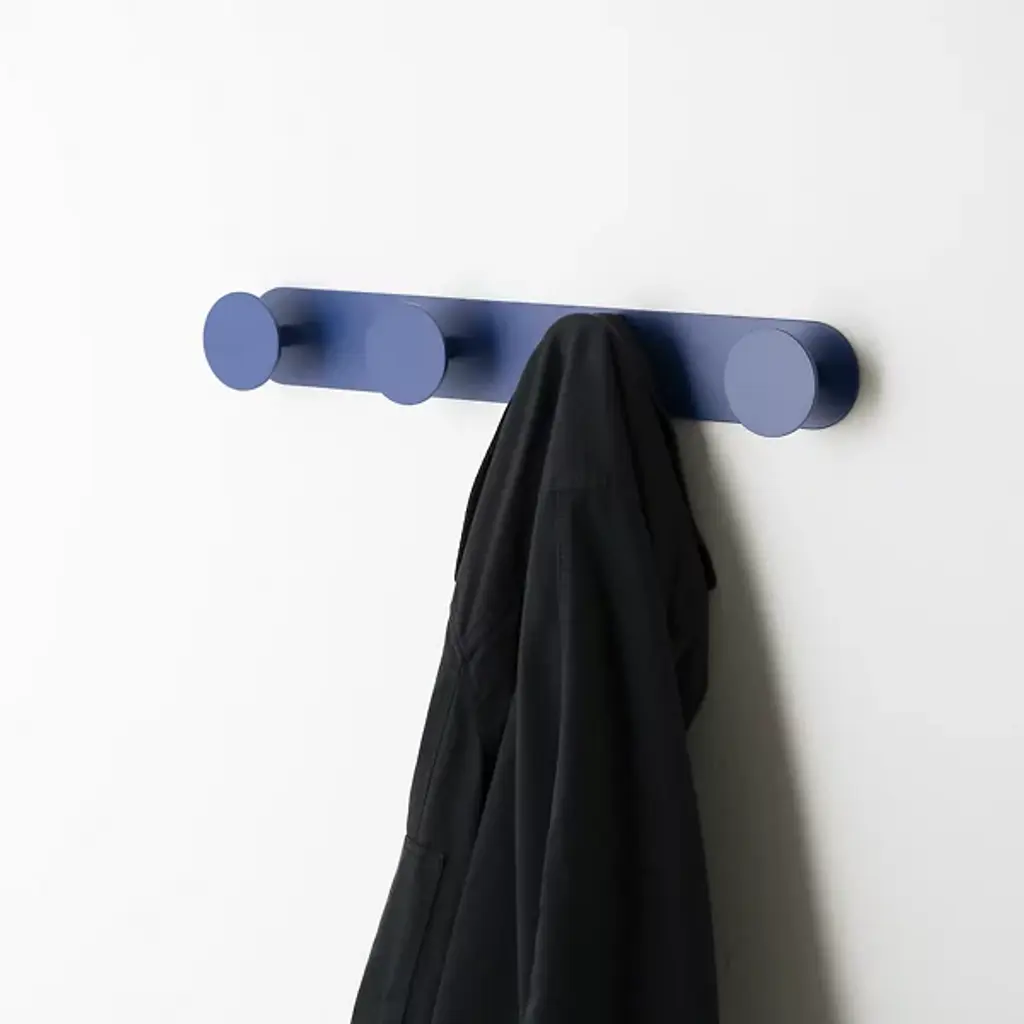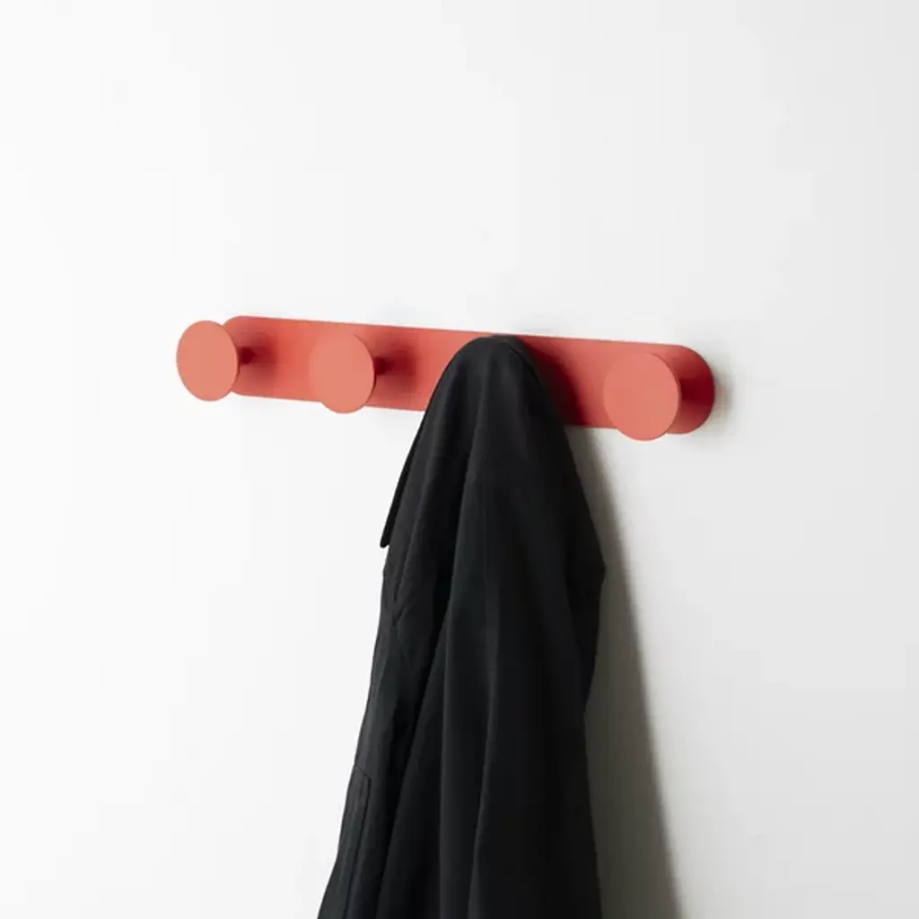 The Pipeline Coat Rack from Raawii provides straightforward contemporary storage to walls and entryways. Designed by Nicholai Wiig-Hansen, and made from recycled aluminum, it uses a securely-mounted oval backplate to support evenly-spaced hanging rods capped by circular heads that are easy on fabrics while easily retaining bags. Its smooth geometry and lively colors draw the eye, adding storage while expanding its surroundings.