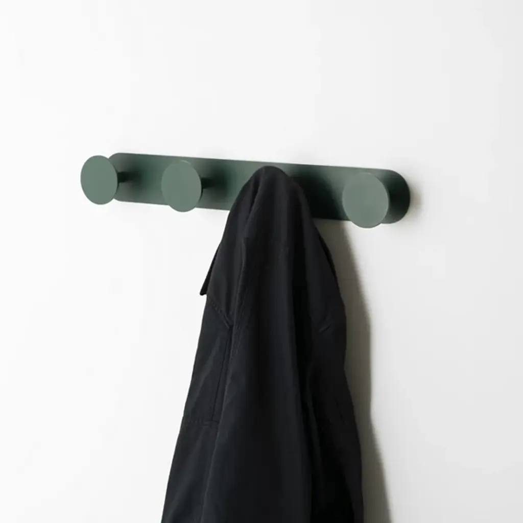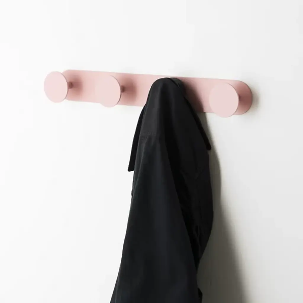 The Pipeline Coat Rack from Raawii provides straightforward contemporary storage to walls and entryways. Designed by Nicholai Wiig-Hansen, and made from recycled aluminum, it uses a securely-mounted oval backplate to support evenly-spaced hanging rods capped by circular heads that are easy on fabrics while easily retaining bags. Its smooth geometry and lively colors draw the eye, adding storage while expanding its surroundings.