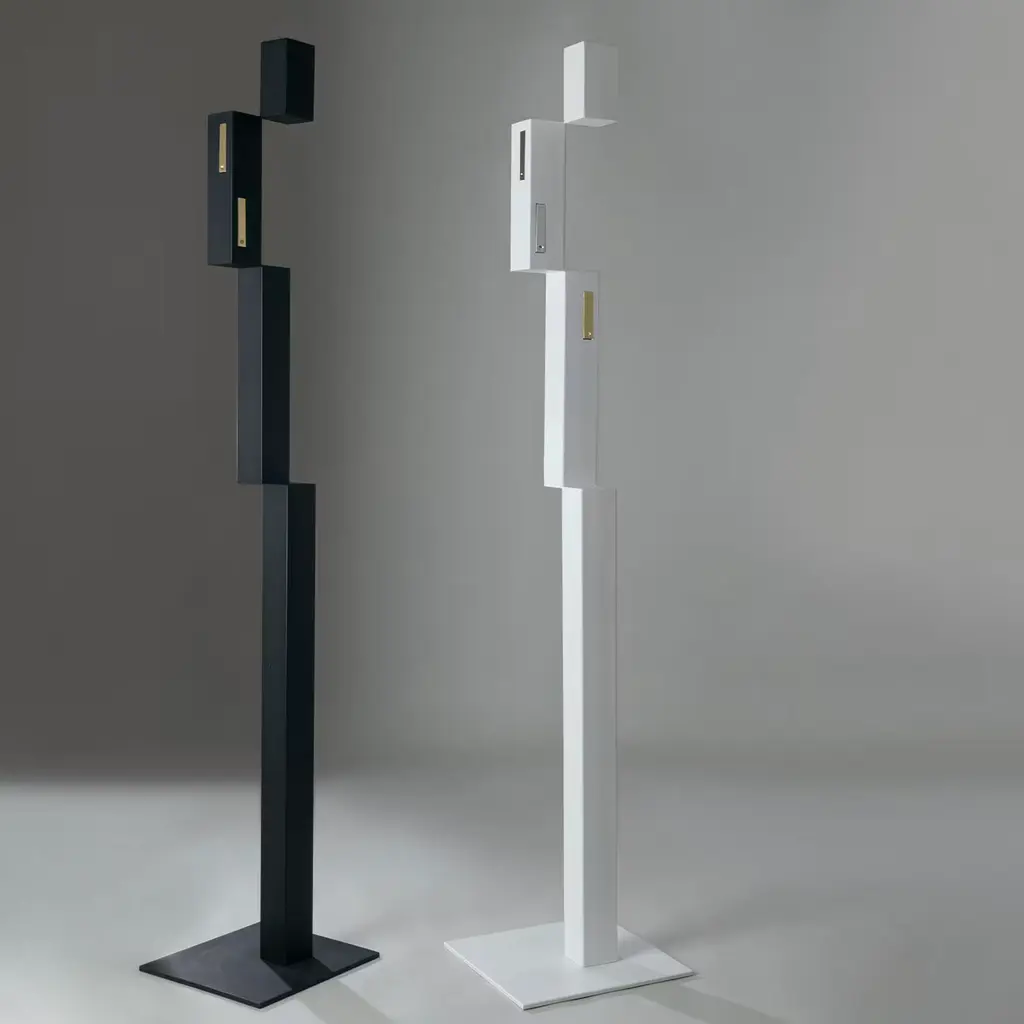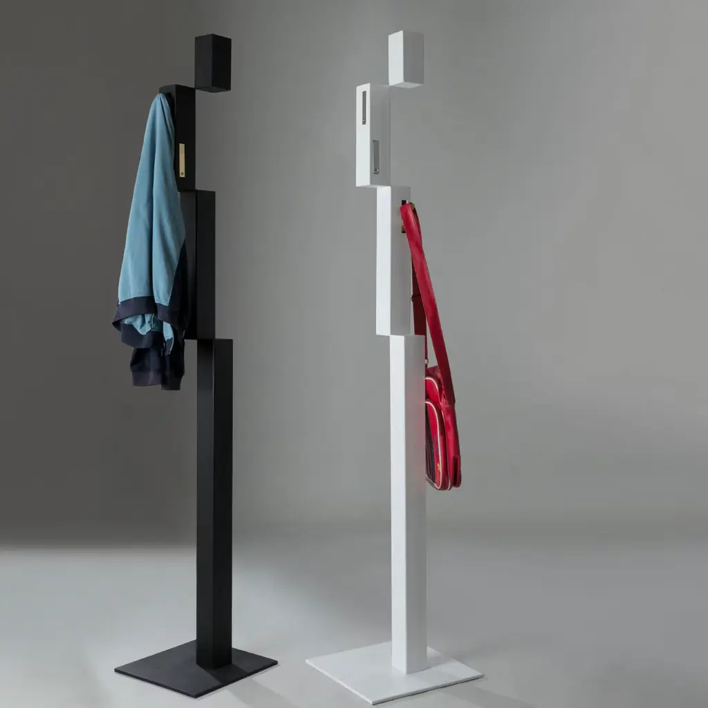 Drawing inspiration from 8-bit video games, the Pixel coat rack surprises for its unconventional silhouette made of metal with a white-lacquered finish. The different-sized blocks are staggered in a tower with an unexpected balance, the two central blocks concealing hooks for hanging coats, hats and more. An abstract sculpture to be admired from all angles, the Pixel Coat Rack creates an eye-catching aesthetic in commercial spaces, such as art galleries, offices, lounges, and contemporary homes. Contact the concierge for other finishes.