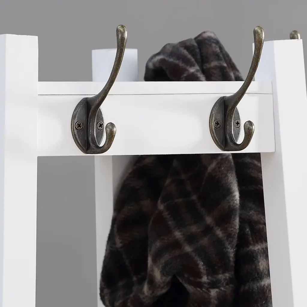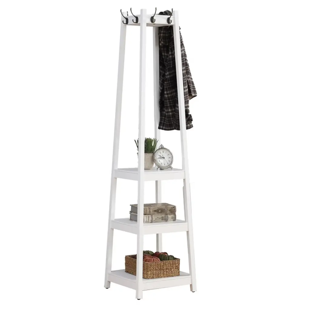 Qingmoon Trapezoid Coat Rack, With 3-tier Storage Shelves And Big Hooks For Entryway Organization (White)
