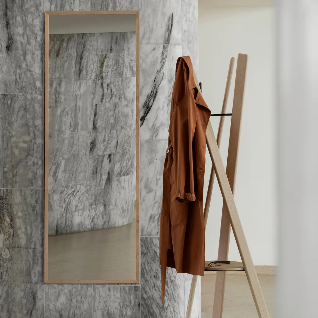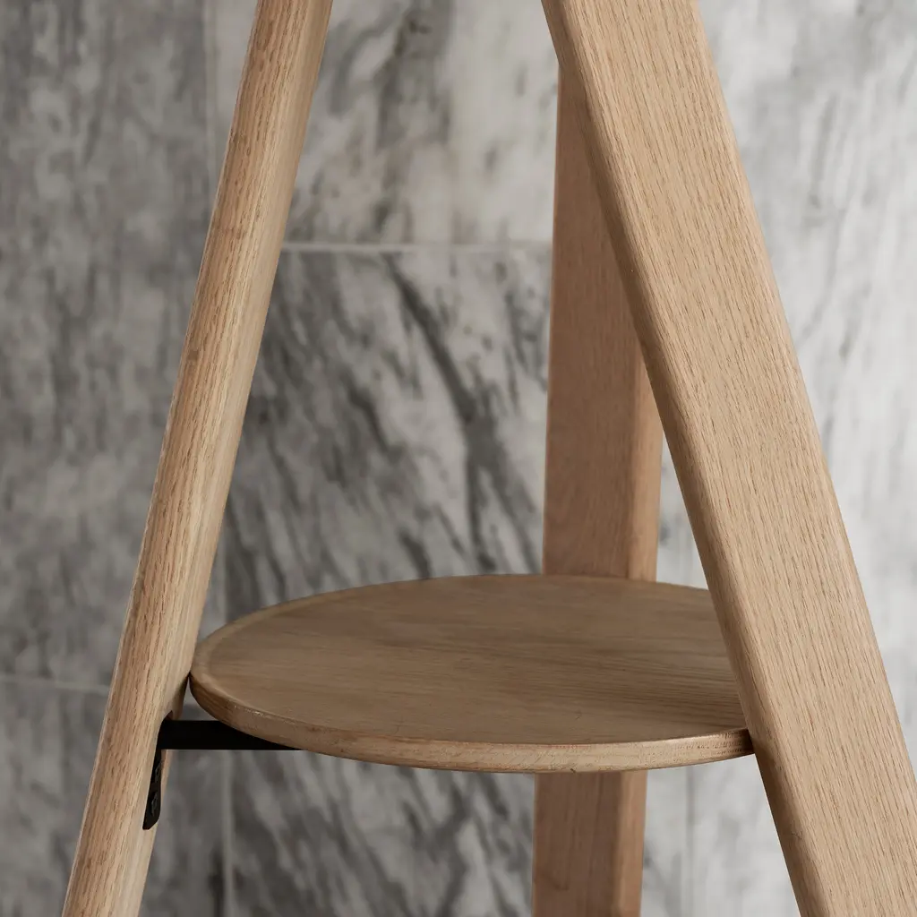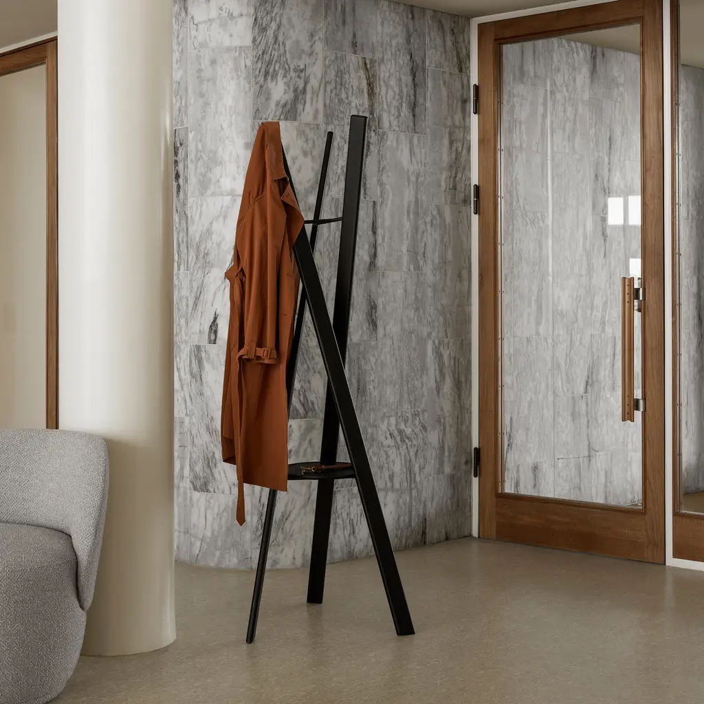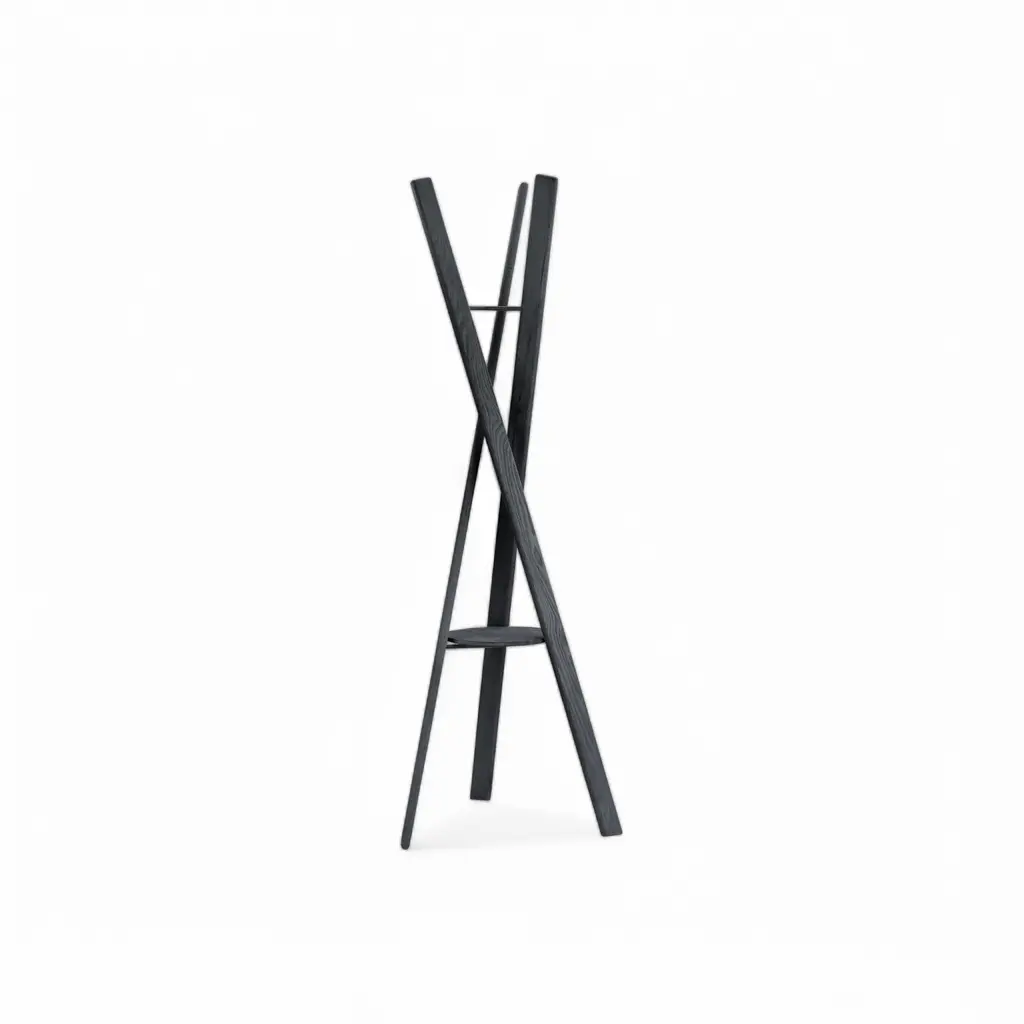 Designed by Kazushige Miyake, the Rakku coat stand strips the idea of a rack down to its essentials—just three interlocking wooden slats held together by triangular metal connectors. The result is a lightweight but stable structure that functions without excess. Jackets, scarves, and hats rest naturally against the wood, while the metal joints allow for hangers when needed. A circular metal tray at the base holds keys or small items, making it as practical as it is visually striking. No wasted materials, no unnecessary details—just a sharp, well-considered design that does exactly what it’s meant to.