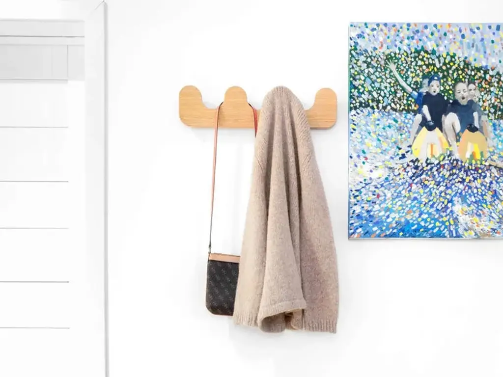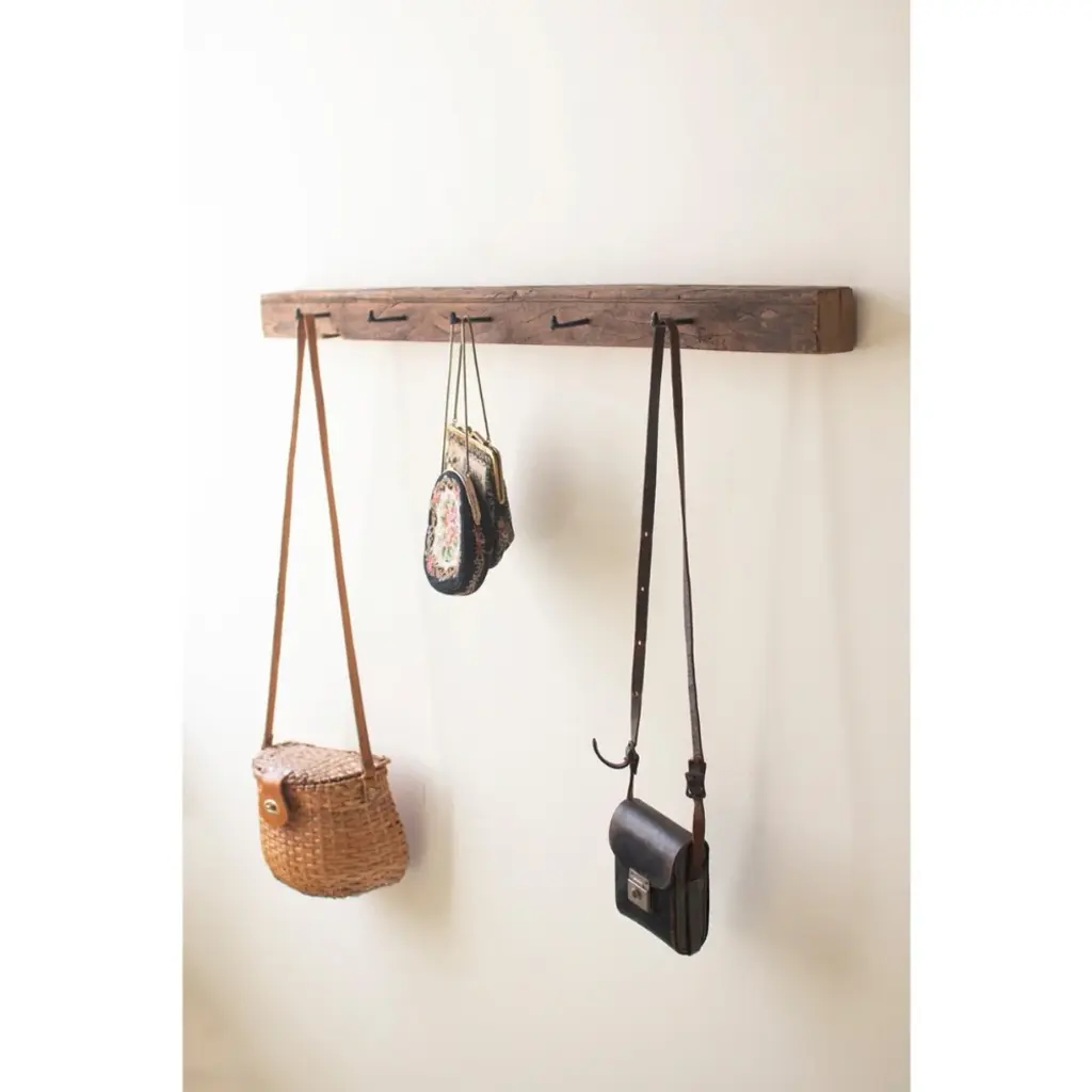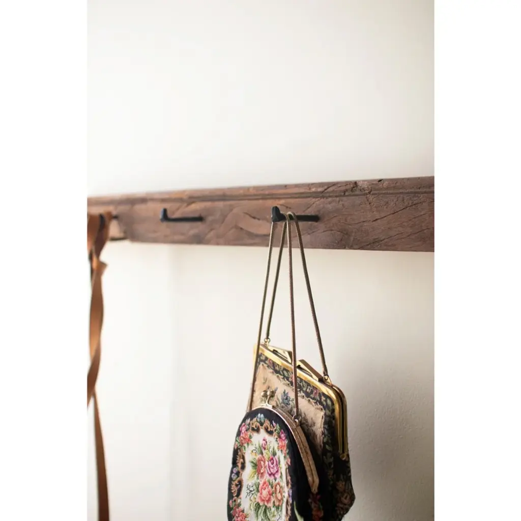 Recycled Wood Coat Rack With Forged Iron Hooks