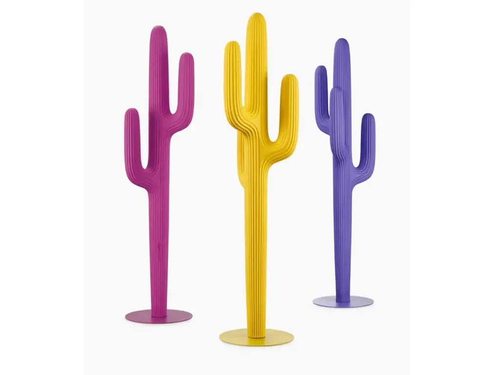 Saguaro is a columnar plant typical of the Sonoran desert that grows different branches as it ages. It turns into a 195cm high coat hanger designed by Stefano Giovannoni for you and your guests’ coats, hats and jackets. Available in different colors, made in recyclable polyethylene and supported by a metal lacquered base.