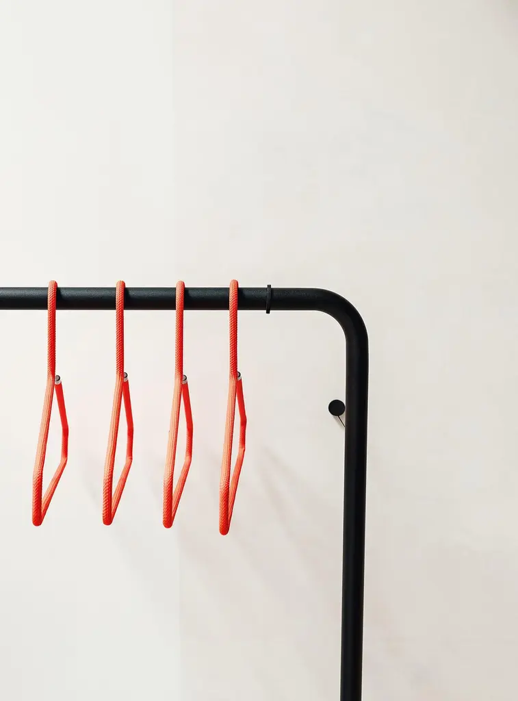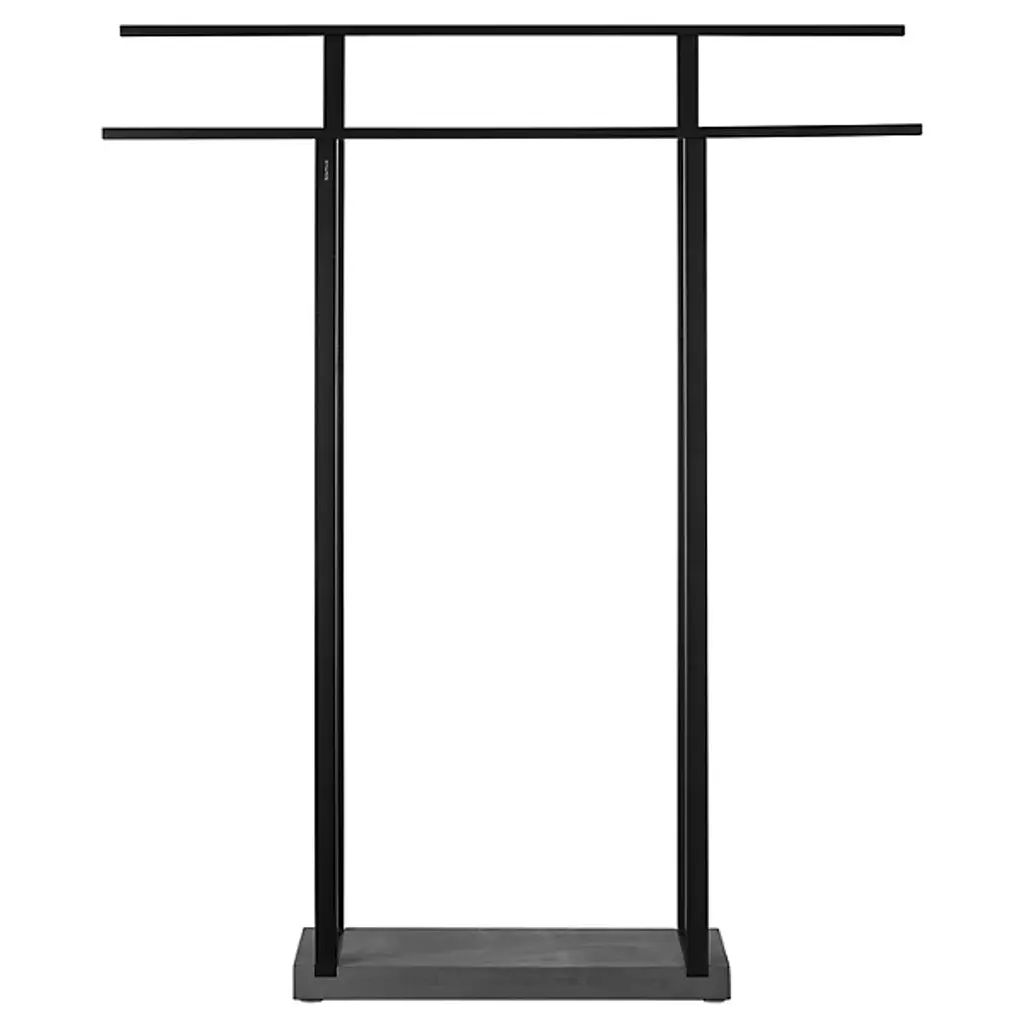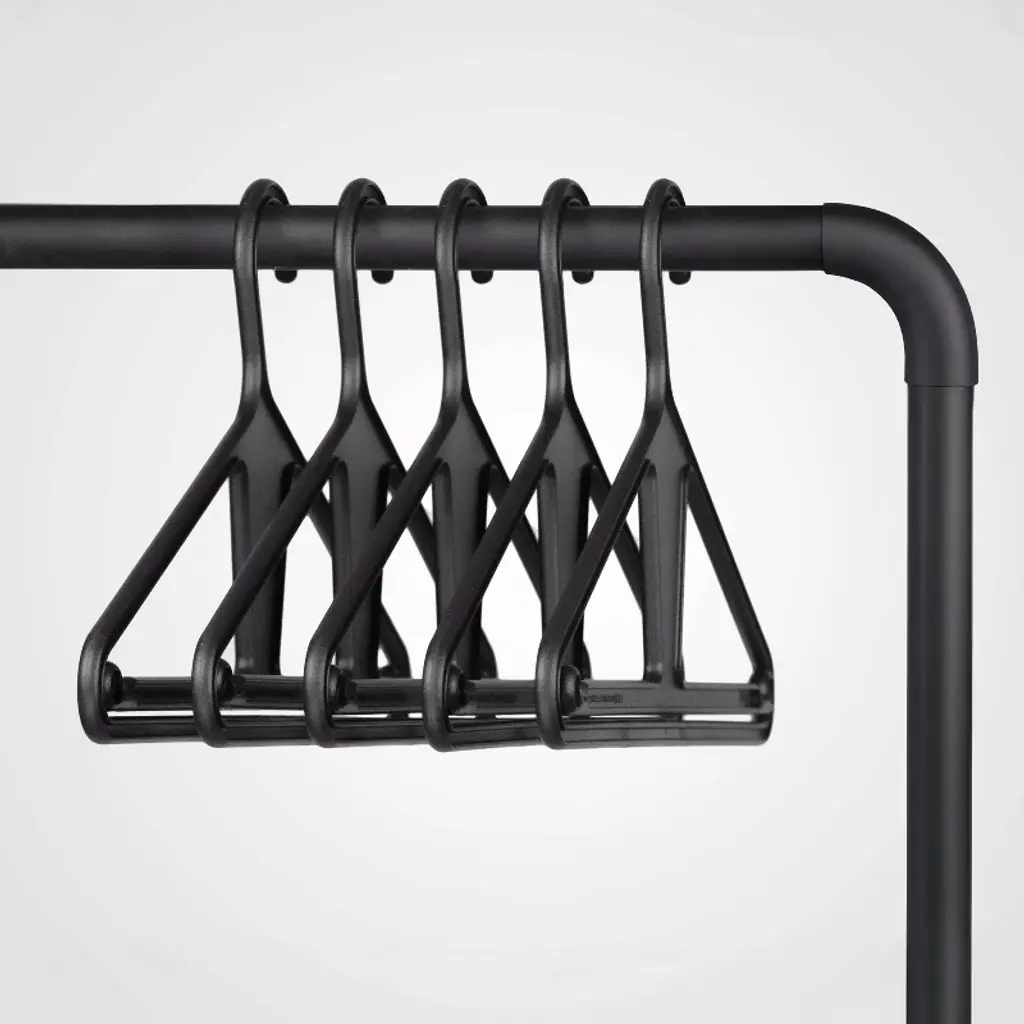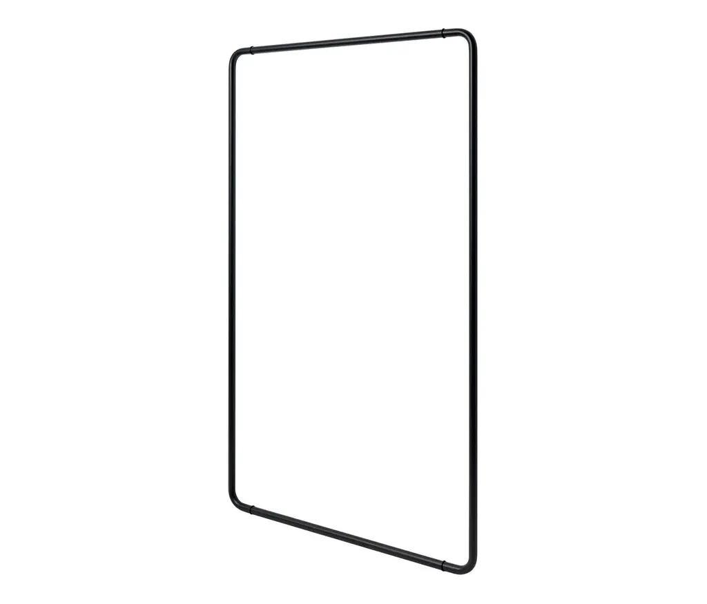 Hangers Not included.Wall-mounted coat rack (pull-down)made of steel with fine powder-coated finish, 2 wire fixings on wall including magnet for fixing to wall.Striking in its reserve. The Curve coat rack combines impressive functionality with smart understatement. The powder-coated metal frame is attached to the wall by a wire. When not in use, it can be positioned upright against the wall and secured by a magnet, leaving the wire to retract. The minimalist solution is available in two widths. Ideal for offices, it is equally at home in the house, for hanging coats in hallways or clothes in bedrooms and dressing rooms. Space-saving and sophisticated.