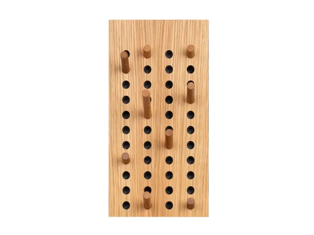 The Scoreboard gives a graphical feel and is a unique way to store favorite items. With its 12 included pegs, the handle height is easily adjustable, and thereby presents the opportunity to create a personal touch.Material: FSC Oak veneer, Dots Solid Wood, Dots not included