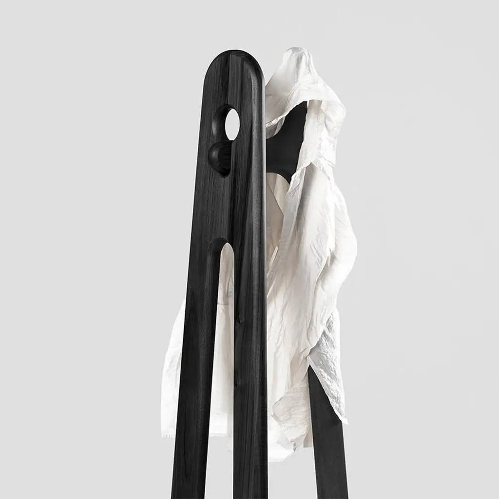 Sedes Sculptural Coat Rack In Black Oak