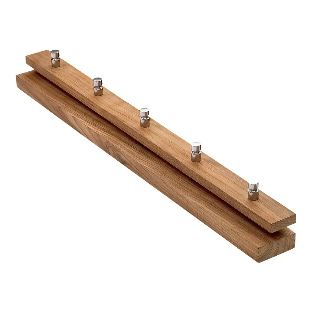 Cutter Coat Rack br> Designer: Niels Hvass br> Manufactured by: Skagerak Denmark br> Dimensions (in): see Options below Skagerak is a family-owned company with historical roots in Scandinavian geography and proud furniture traditions. Our passion for wood and our focus on quality have remained intact, as we have developed into a modern design brand with an extensive selection of contemporary products in a wide range of materials, created by established designers as well as up-and-coming talents. We stand for responsible production, transparent working relations and good working conditions. We support and adhere to the United Nations' ten principles for CSR and only use legally sourced timber. Our products fall into three categories: Interior, Outdoor and Accessories, and we export to forty countries. We are proud of that achievement and attribute it to our efforts to create functional products for real life. Options 1) 39.4 w x 4.75 d x 2.75 h 2) 28.3 w x 3.3 d x 2.75 h