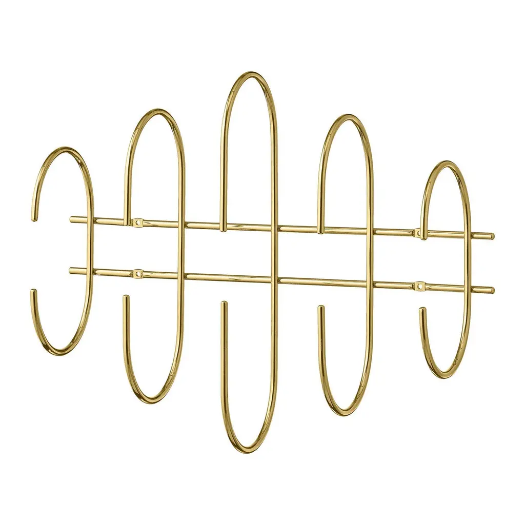Small gold minimalist coat rackDimensions: D 52 x W 15.8 x H 41 cm Materials: Steel w. Brass Plating, Chrome Plating & Matte Powder Coating.Available in Silver and Black, and in size Large.MOVEO means movement, which is truly what this item is – an addition of movement to otherwise still spaces. The expression of MOVEO is all about dynamic and motion, giving the item much more purpose than its practical use as a coat rack. Appearing as small waves rolling and moving along the wall, the MOVEO coat rack adds a cheerful yet sophisticated personality to the room.