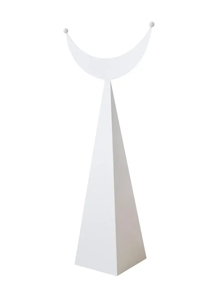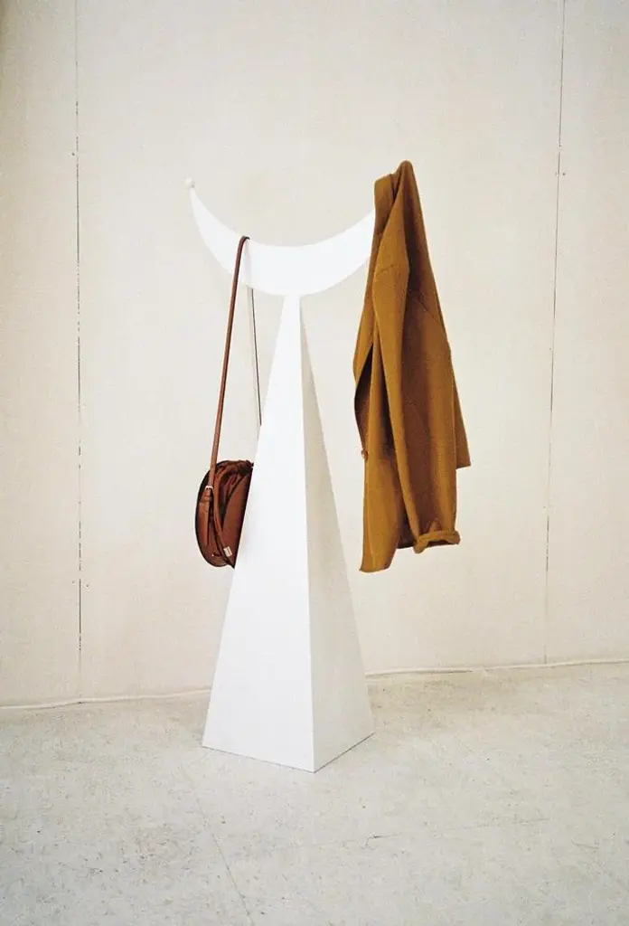 Small miró coat rack by nazara lazaro dimensions: d 28 x w 54 x h 126 cm materials: steel technique: powder-coated. It can be customized and ordered in stainless steel, rust, or powder coated in any ral color. Also available in large. The miró coat rack is part of the steel collection, a series inspired by joan miró’s paintings and picasso’s harlequins with a monochromatic nod to the memphis movement of the 80s. The piece is displayed in powder-coated steel. It can be customized and ordered in stainless steel, rust, or powder coated in any ral color. The triangle chair, miró coat rack, and halo hanging rack are part of the steel collection, a series inspired by joan miró’s paintings and picasso’s harlequins with a monochromatic nod to the memphis movement of the 80s. Nazara lázaro is a product and interior designer based in berlin, and her crooked collection was borne of the one thing that might strike fear into the majority of designers’ hearts — no 90-degree angles, and no symmetry. The use of 3d modeling software was her starting point, as she realized she could create limitless variations and then whittle the selection down to the most striking incarnations of her idea. Her ability to experiment without fear and draw from non-traditional design cues may be the result of a life spent traveling and soaking up disparate cultures, from the canary islands where she was born to japan — where she spent a two-year sabbatical learning about woodwork and architecture — to an exploration of the silk road. This piece is attributed to the mentioned designer/maker. It has no attribution mark and no official proof of authenticity, however it is well documented in design history. I take full responsibility for any authenticity issues arising from misattribution
