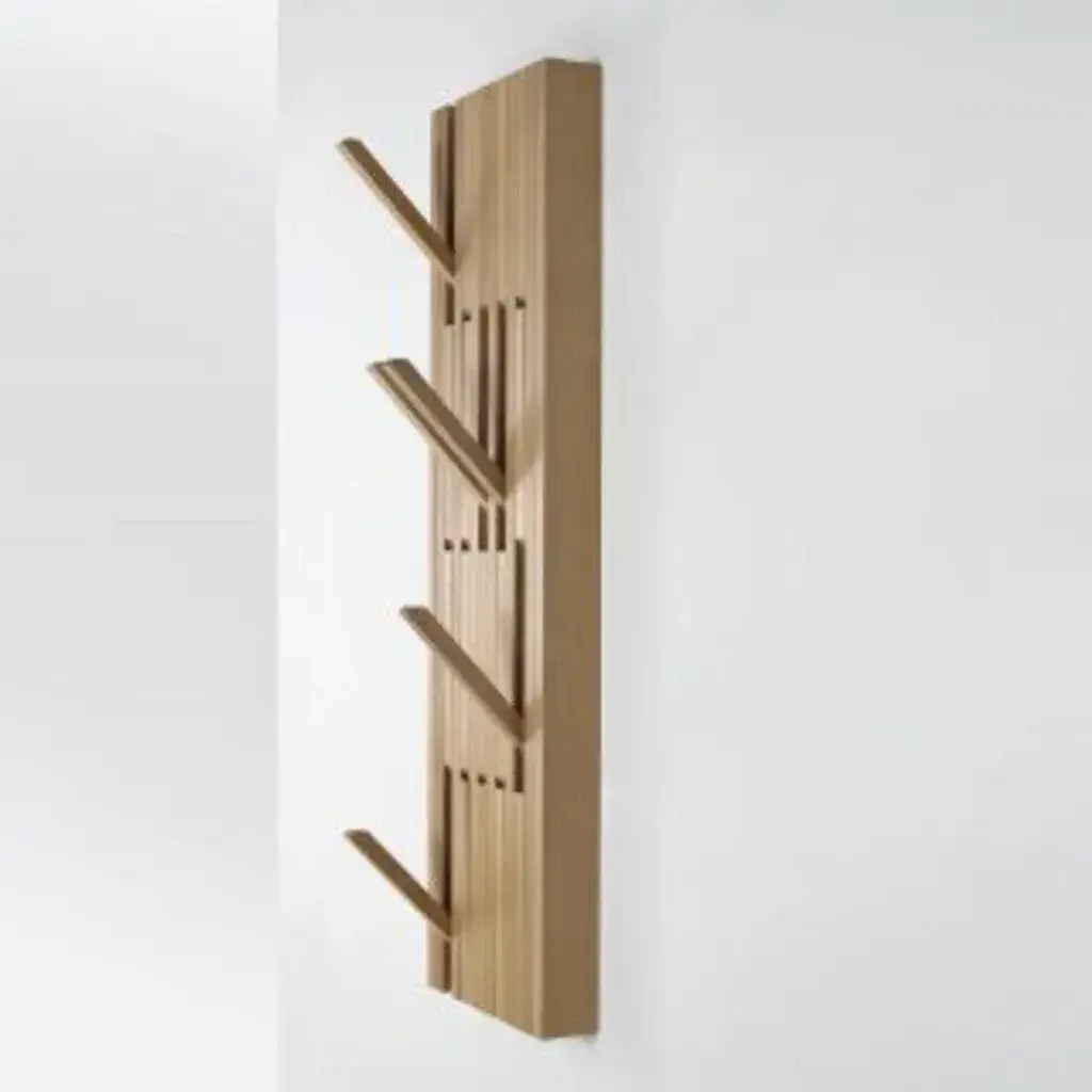 Wall-mounted "piano" coat rack, patrick séha dimensions: 39 x 5 x 147cm materials: tainted oak (black) available in small and large versions and in various wood finishes. Piano is a multipurpose wall-mounted hanger panel with foldable hooks, originally designed as a coat rack by patrick séha (b) in 2010 during his design studies. The flexible hooks of the piano can be opened or closed over the full width of the rack, at four different heights. The piano is easy to install thanks to the separate wall-mounting block (see piano installation sheet).