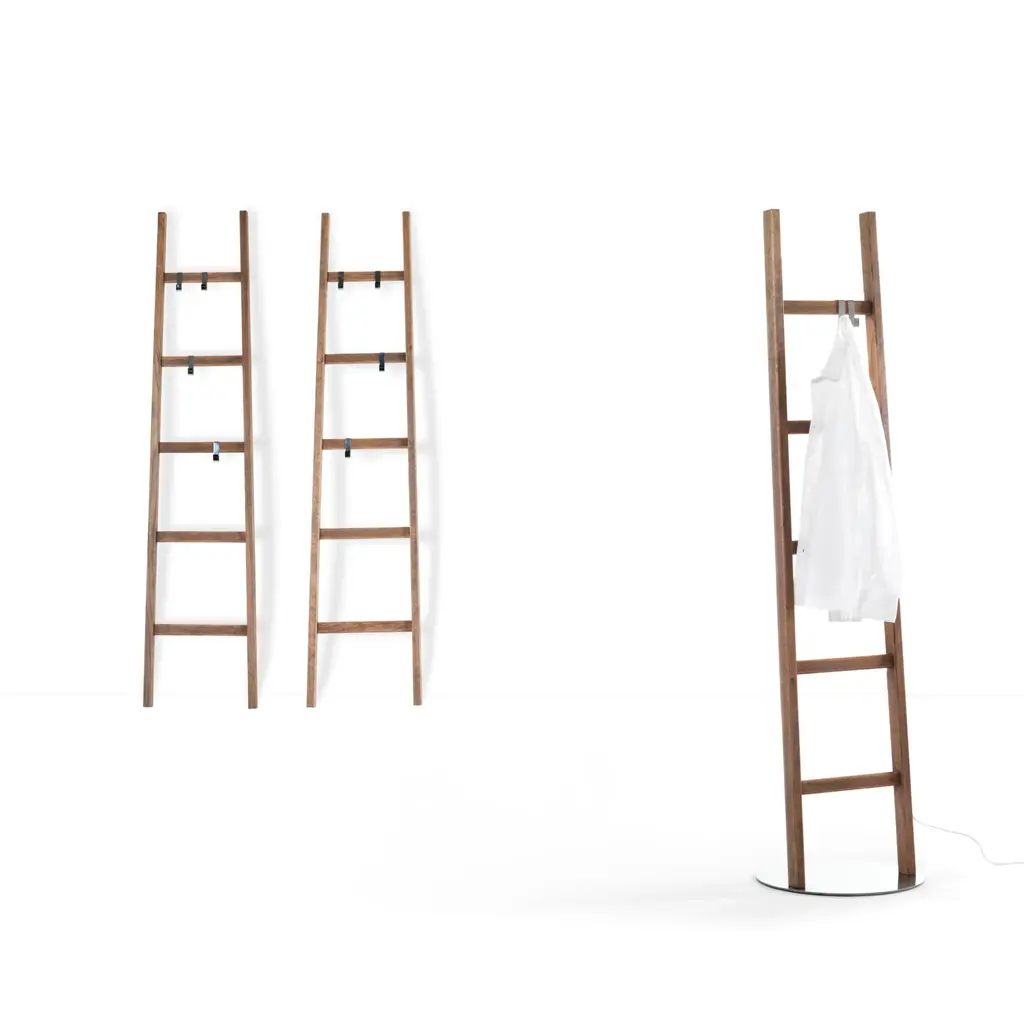 Enhance your space with luxury and functionality with Solid Ash Coat Rack | Mogg Alla Scala. Crafted from solid ash wood, this elegant coat rack can stand alone or be wall-mounted. Its simple design and customizable features, including coat hooks, shelves, and a mirror, make it a timeless addition to any environment. Illuminate your space with the LED light and keep your belongings organized with the included coat hangers. Elevate your space with Alla Scala coat rack, a sophisticated and exclusive piece for your home.