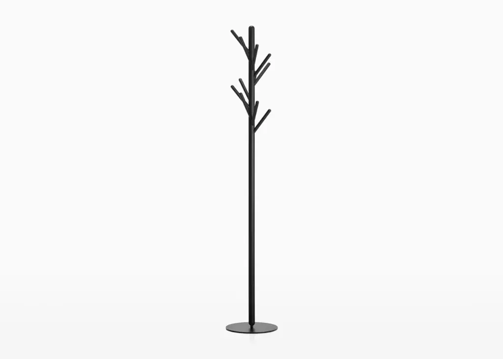 “Simplicity is the most complicated thing in the world.” Vico Magistretti.Austerity of design and the absence of decoration were the inspiring principles for Vico Magistretti’s artistic production. Spiros was born from a change in perspective, from the everyday to the unusual, which transforms a common object, the “broom handle”, into a designer object that, with just a few elements, is able to be profoundly expressive. A clothing rack with a self-supporting metal base and a central pole made from ash wood, on which wooden pegs are arranged in a spiral. A painted open-pore finish in black or natu.