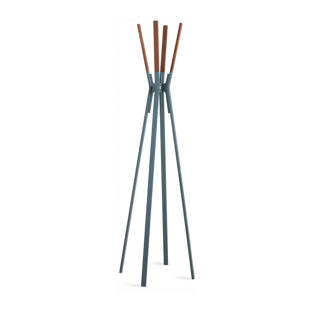 A true attention-getting modern coat rack, the Splash Coat Rack from Blu Dot is a simple statement piece that's supremely functional. Crafted from powder-coated steel and accented with solid walnut wood, this contemporary coat stand features a sculptural profile of vertical elements that flare out into a sturdy base, juxtaposed with solid walnut spokes at the top. Perfect for keeping coats, scarves and bags organized, the Blu Dot Splash Coat Rack is available in a variety of colors to blend in or make a "splash" within your contemporary home. Highlights