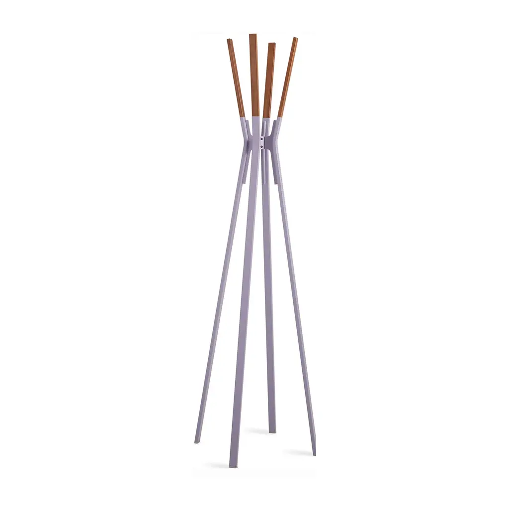 A true attention-getting modern coat rack, the Splash Coat Rack from Blu Dot is a simple statement piece that's supremely functional. Crafted from powder-coated steel and accented with solid walnut wood, this contemporary coat stand features a sculptural profile of vertical elements that flare out into a sturdy base, juxtaposed with solid walnut spokes at the top. Perfect for keeping coats, scarves and bags organized, the Blu Dot Splash Coat Rack is available in a variety of colors to blend in or make a "splash" within your contemporary home. Highlights