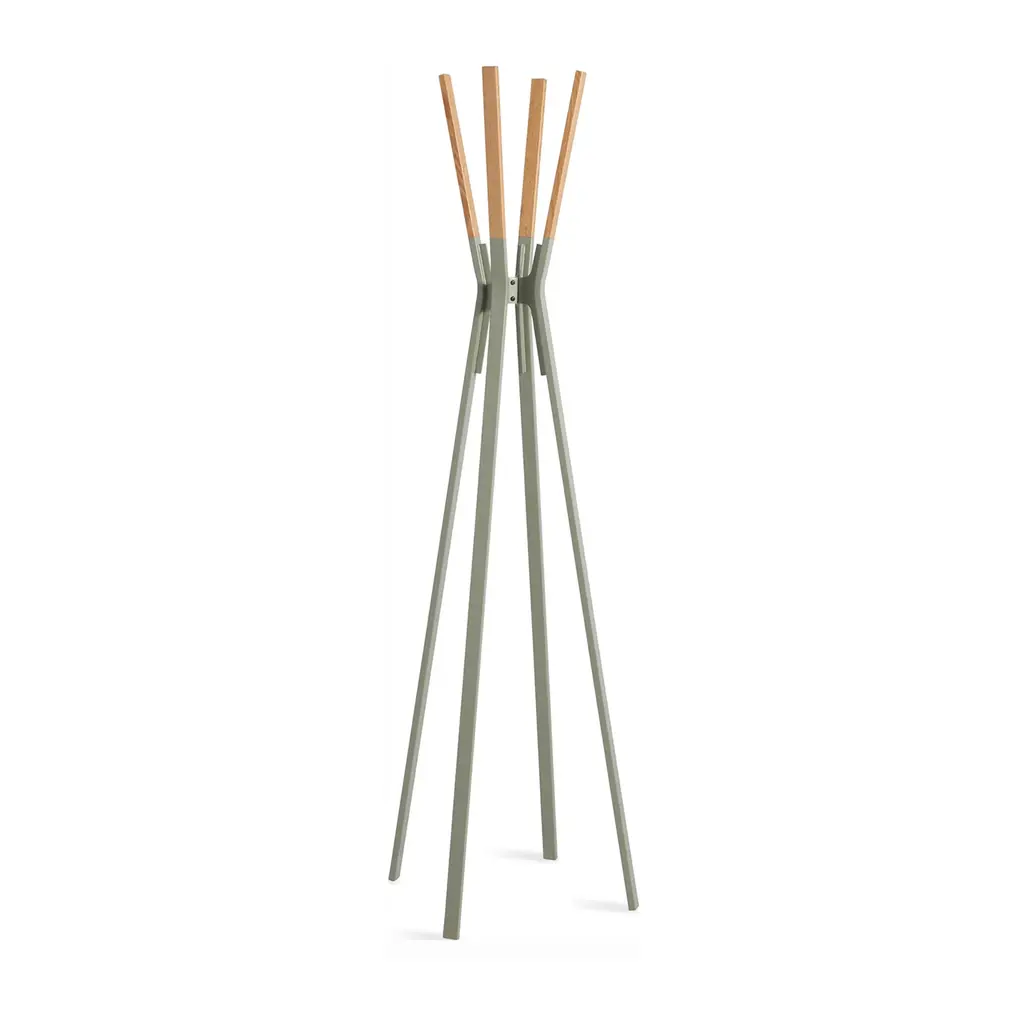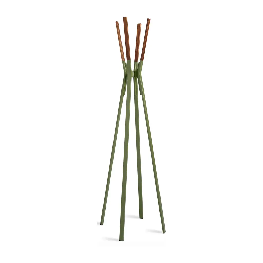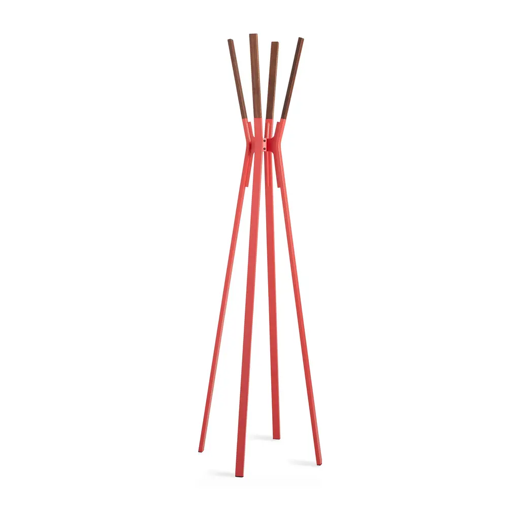 A true attention-getting modern coat rack, the Splash Coat Rack from Blu Dot is a simple statement piece that's supremely functional. Crafted from powder-coated steel and accented with solid walnut wood, this contemporary coat stand features a sculptural profile of vertical elements that flare out into a sturdy base, juxtaposed with solid walnut spokes at the top. Perfect for keeping coats, scarves and bags organized, the Blu Dot Splash Coat Rack is available in a variety of colors to blend in or make a "splash" within your contemporary home. Highlights