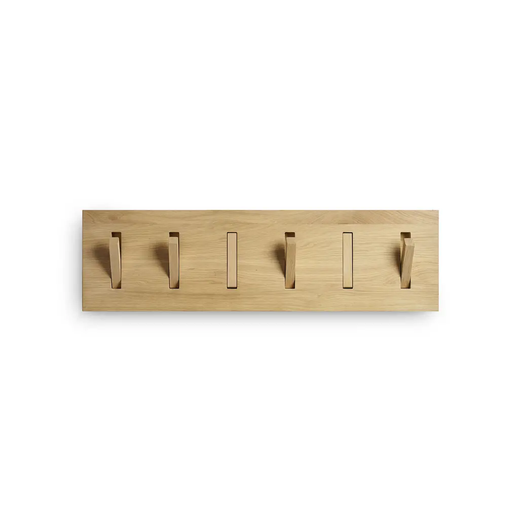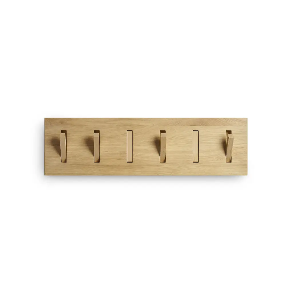 The best kind of home accessories are those that optimize function yet also look beautiful. The Ethnicraft Utilitile coat hanger wall mounted in a horizontal position is the perfect example. Simple and stylish, this wall hanger features six flexible hooks that you can either turn forward to hold coats, bags, and other accessories, or place in a vertical position, flush with the frame, to save space. Crafted to last, each Utilitile Wall Hanger is made from solid oak and features a varnish finish. This coat hanger is wall mounted and offers an elegant solution to use the space in a hallway or entrance area more efficiently.