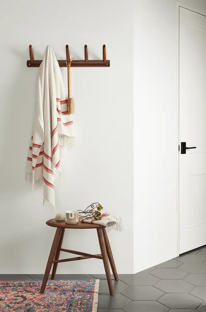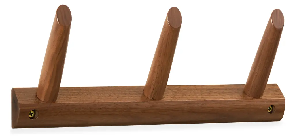 This eye-catching design creates an inviting entryway or adds storage to small spaces. Made from solid ash, the angled hooks hold coats, hats and totes with modern style.