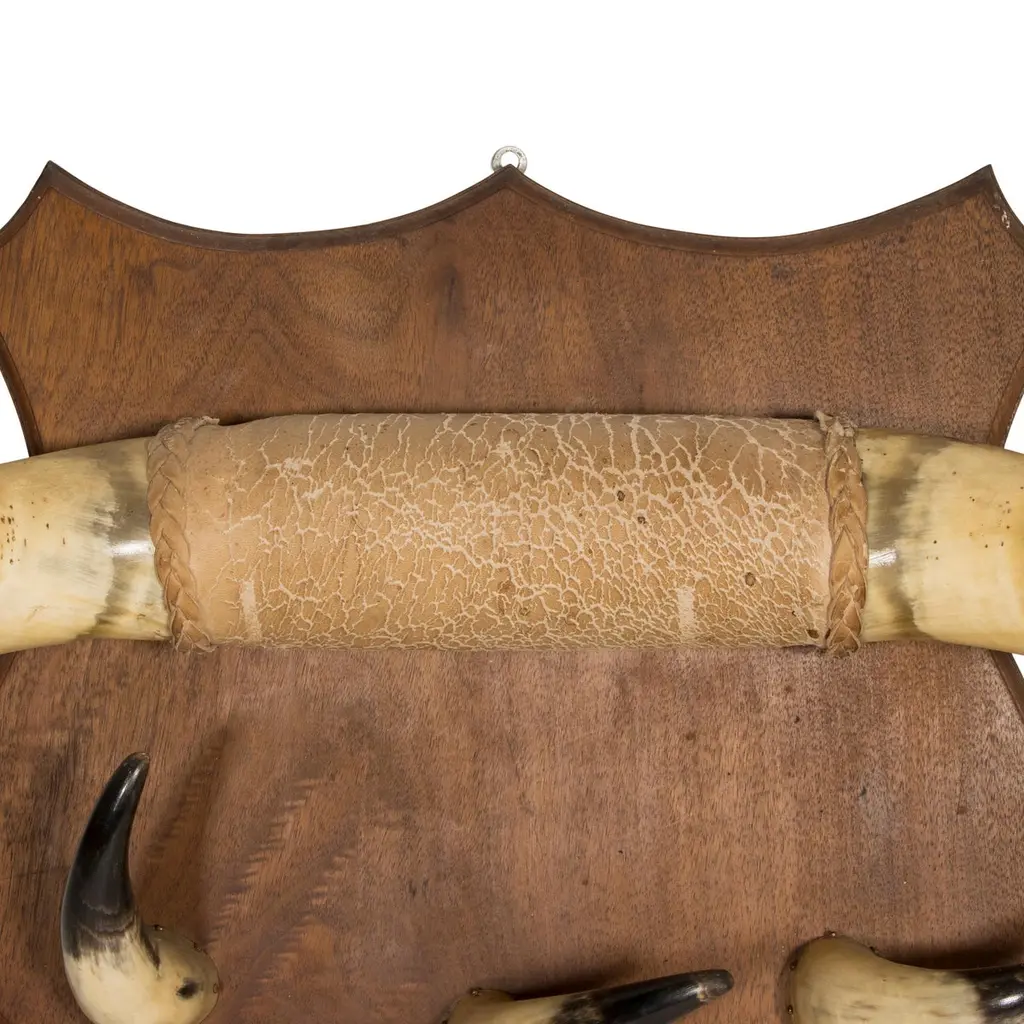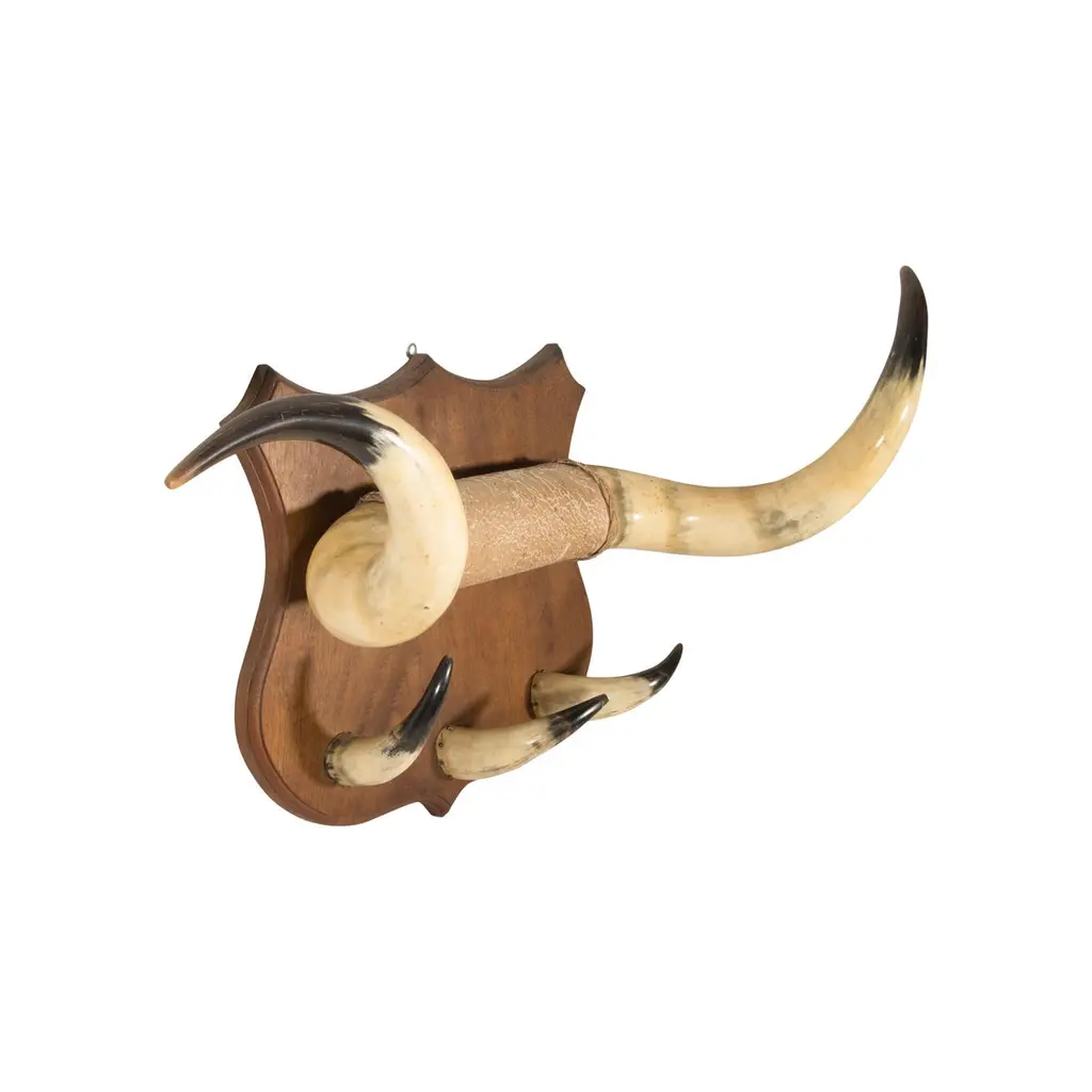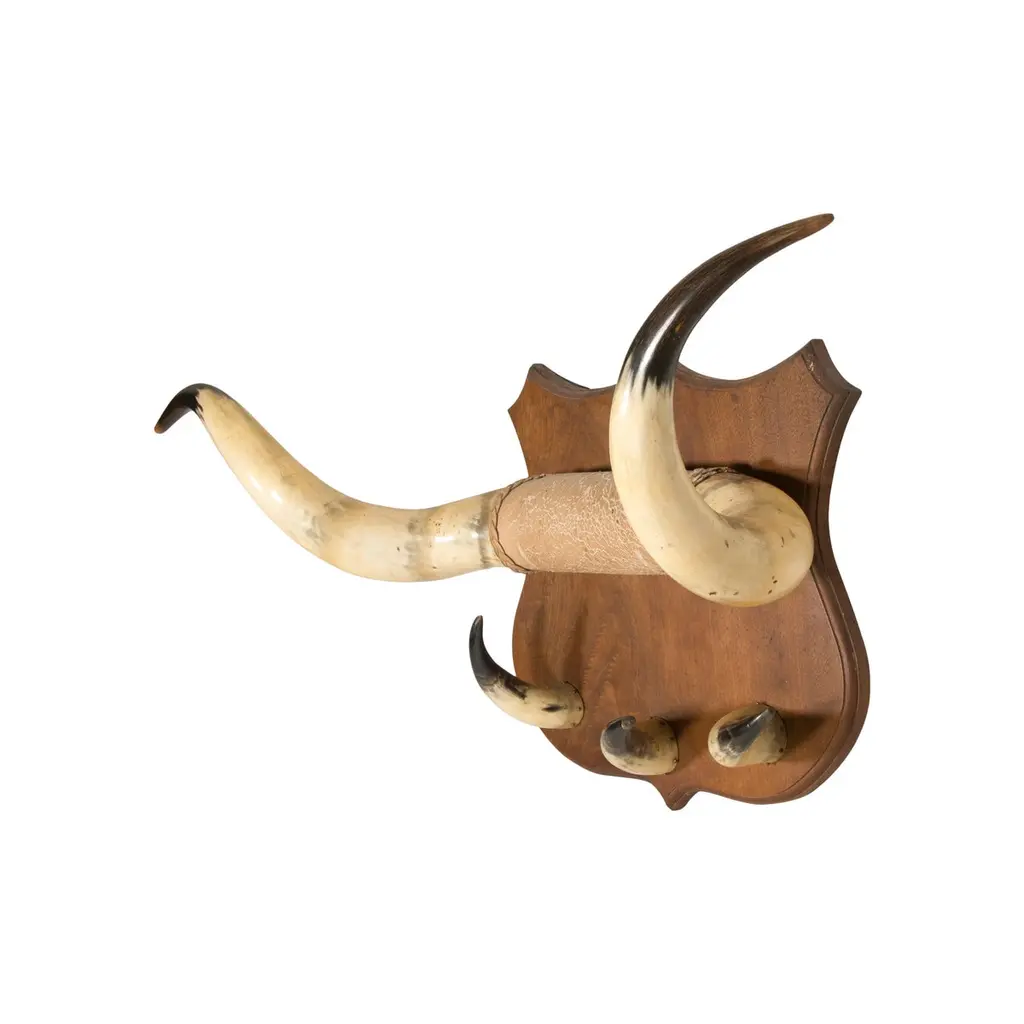 Steer horn oak walnut plaque for hats or coats. 34"W tip to tip of horn, 15"H.Period: Late 19th centuryOrigin: Western USSize: 34"W tip to tip of horn, 15"H. Family Owned & OperatedCisco’s Gallery deals in the rare, exceptional, and one-of-a-kind pieces that define the history of America and the Old West. Our pieces range from American Indian to Cowboy Western and include original items of everyday life, commerce, art, and warfare that tamed America’s frontier. Our 14,000 square foot gallery opened in 1996 in beautiful Coeur d’Alene, Idaho.Personal ServiceCisco’s operates on old fashioned values – honesty and integrity, and all of our items are backed by our money back guarantee. We appreciate the opportunity to earn your business. Whether you desire assistance with a jewelry purchase, choosing a gift, identification, or even selling – we hope to be your trusted source.