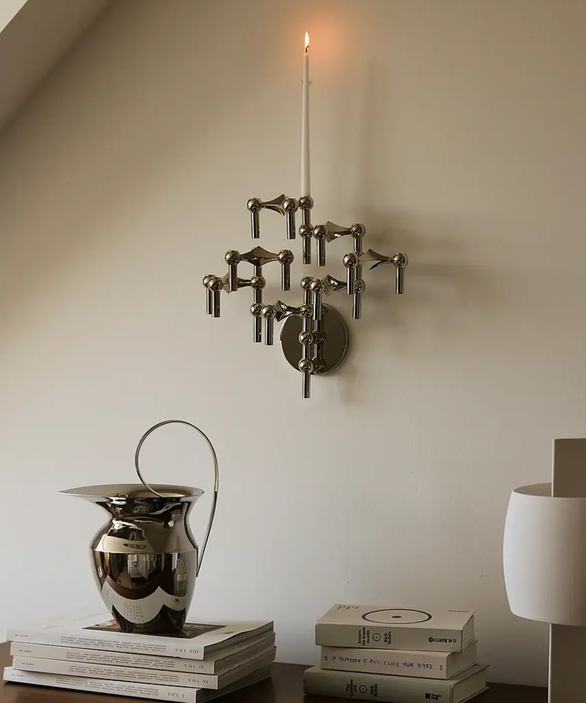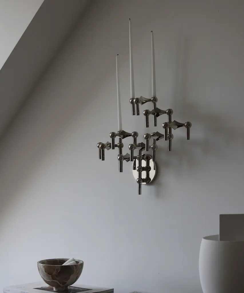 The wall hanger has been carefully developed to expand the visual possibilities of the candle holder. Inspired by the iconic STOFF Nagel design the wall hanger makes it possible to create unique sculptures from vertical surfaces with infinite pieces of the candle holder, bowl, and vase. The wall hanger is understated and discreet encouraging the exploration of individual ways to exhibit your STOFF Nagel collection. Build up your sculpture from the base of the wall hanger with your collection of candle holders. We recommend placing a maximum of 25 and a minimum of 5 candle holders on the wall hanger when creating your wall sculpture to obtain the best visual base.STOFF Nagel is a Danish design brand founded in 2015 and known for the relaunch of the iconic STOFF Nagel candle holder.