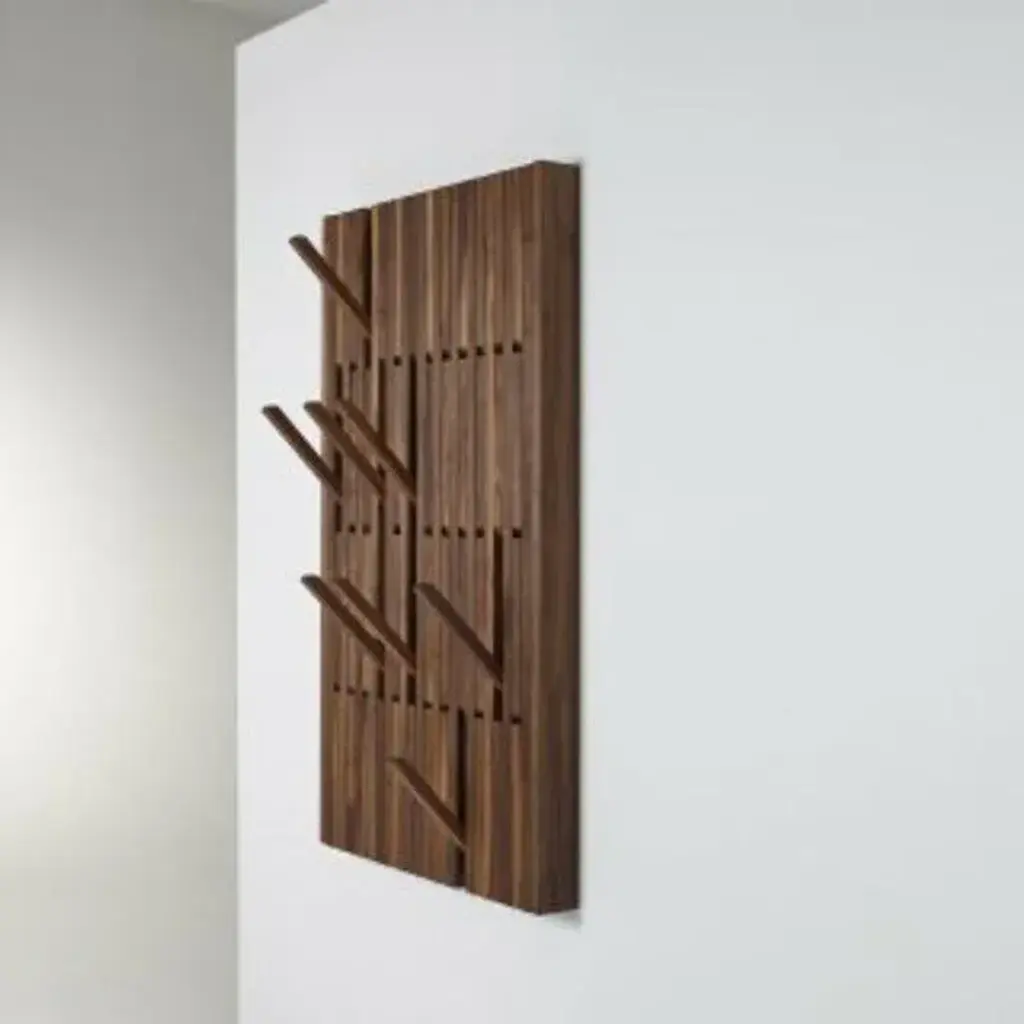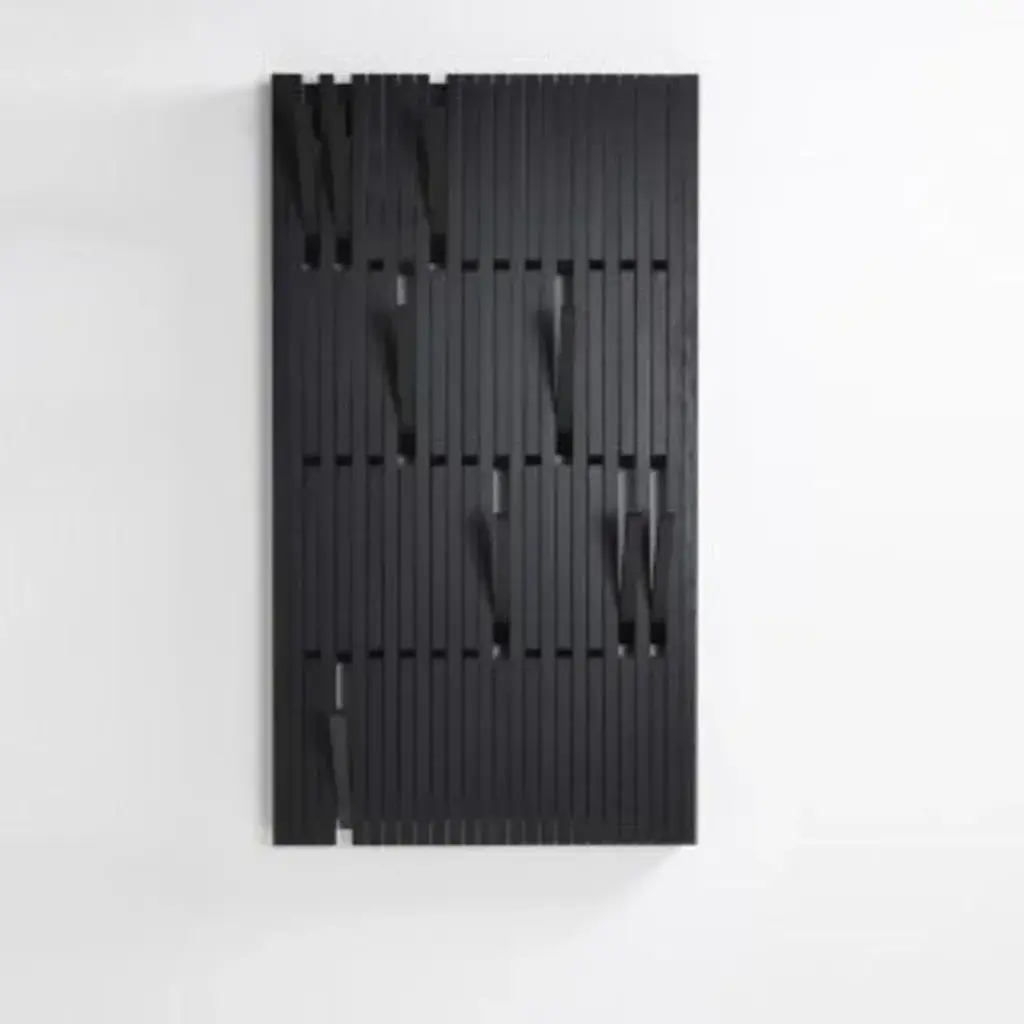 Wall-mounted "piano" coat rack, patrick séha dimensions: 81 x 5 x 147cm materials: beechwood (white) available in small and large versions and in various wood finishes. Piano is a multipurpose wall-mounted hanger panel with foldable hooks, originally designed as a coat rack by patrick séha (b) in 2010 during his design studies. The flexible hooks of the piano can be opened or closed over the full width of the rack, at four different heights. The piano is easy to install thanks to the separate wall-mounting block (see piano installation sheet). Pu.