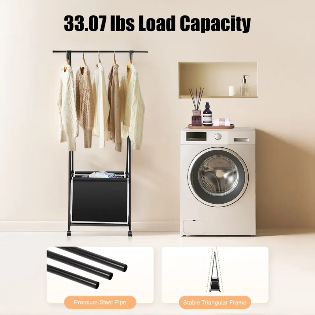Yiyibyus Clothes Rack With Laundry Basket, Rolling Coat Rack, Clothes Rack With Wheels
