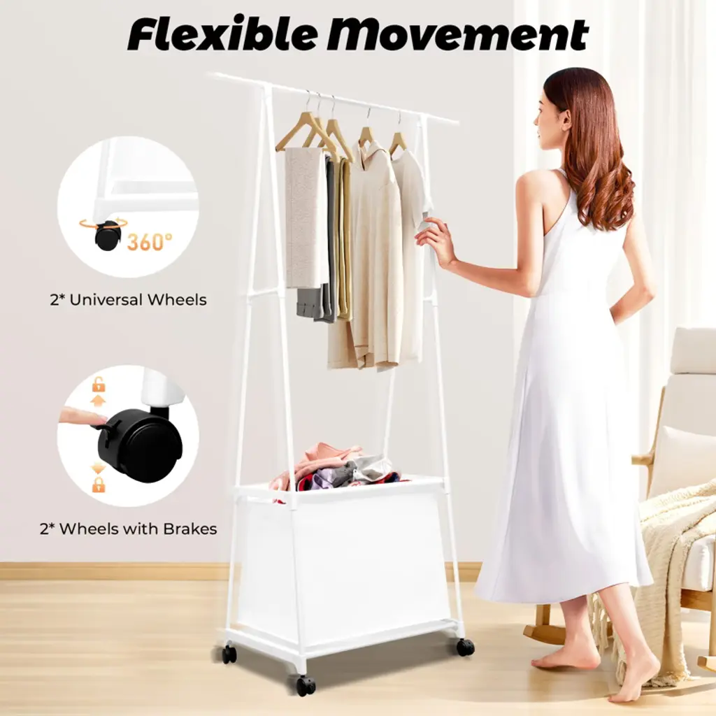 Yiyibyus Clothes Rack With Laundry Basket, Rolling Coat Rack, Clothes Rack With Wheels