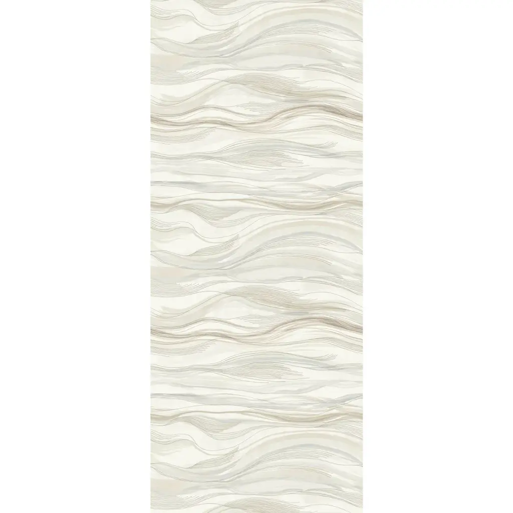 Horizontal waves of color and line drift across a surface of shimmering Mylar in pattern Currents Mural. This Currents Wall Mural measures approximately 50.4 inches wide by 10.2 feet long, covering 1 panel - Measures 4-ft 2-in wide by 10-ft 2-in tall when assembled per roll. The organic texture and shimmering allure which defines the second volume of this sought-after design duology brings new vision and identity to the signature of luxury interiors. Unpasted vinyl/mylar material; No repeat, random match; Washable and strippable; 50.4-in by 10.2-ft long roll; Covers 1 panel - measures 4-ft 2-in wide by 10-ft 2-in tall when assembled