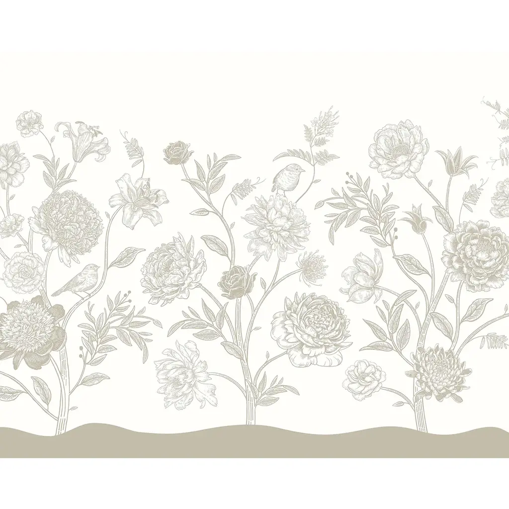 Brewster Origin Murals Jacobean Rose Trail Neutral Wall Mural - N/a - White